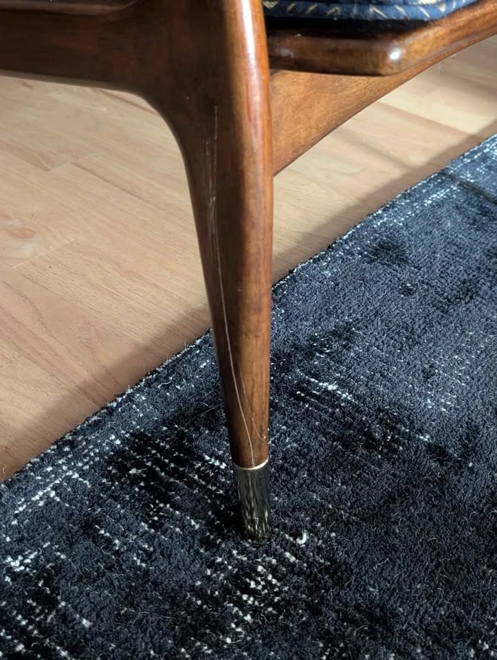 Birch frame with brass accents; medium natural finish