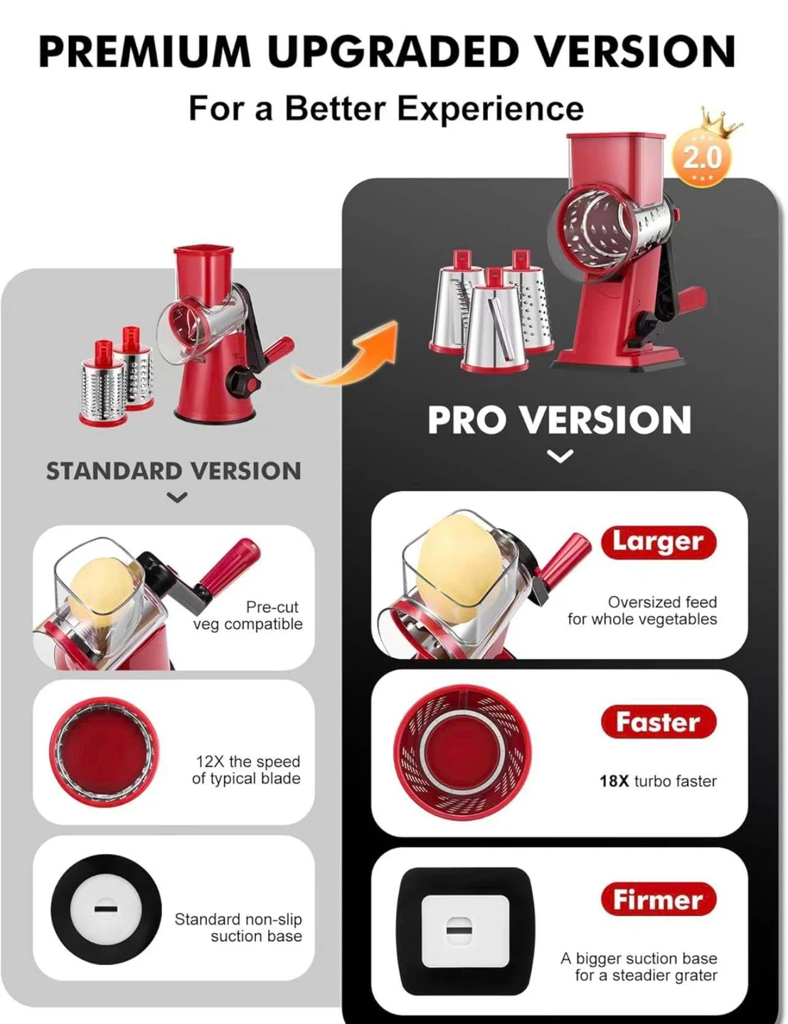 Rotary Cheese Grater Hand Crank - Upgraded Cheese Shredder with 4 Interchangeable Blades, Rotary Grater with Non-slip Suction Base, Easy to Clean Kitchen Grater Slicer Grinder for Vegetable Nuts