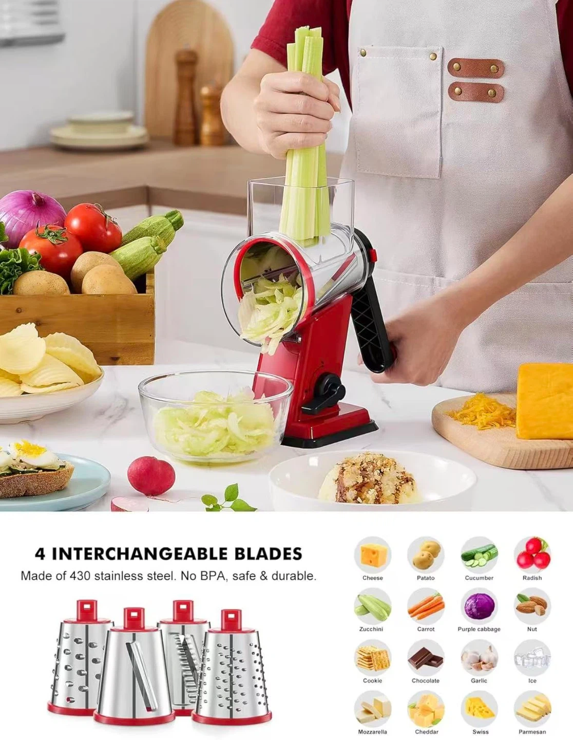 Rotary Cheese Grater with 4 Blades
