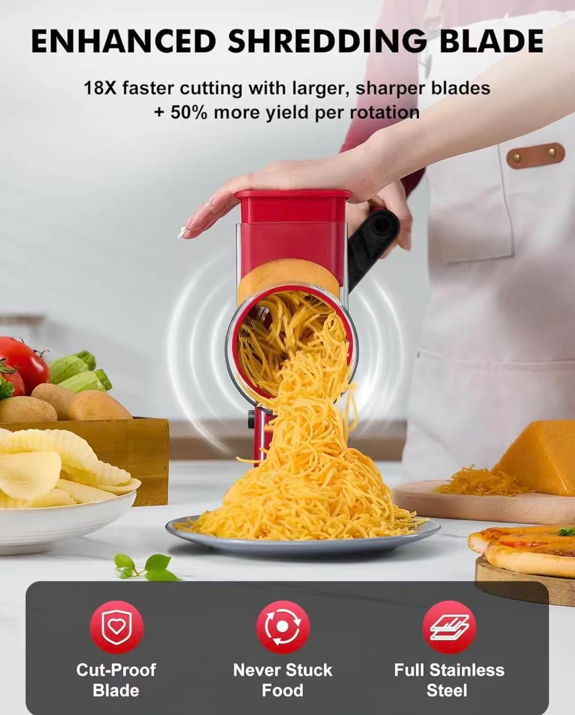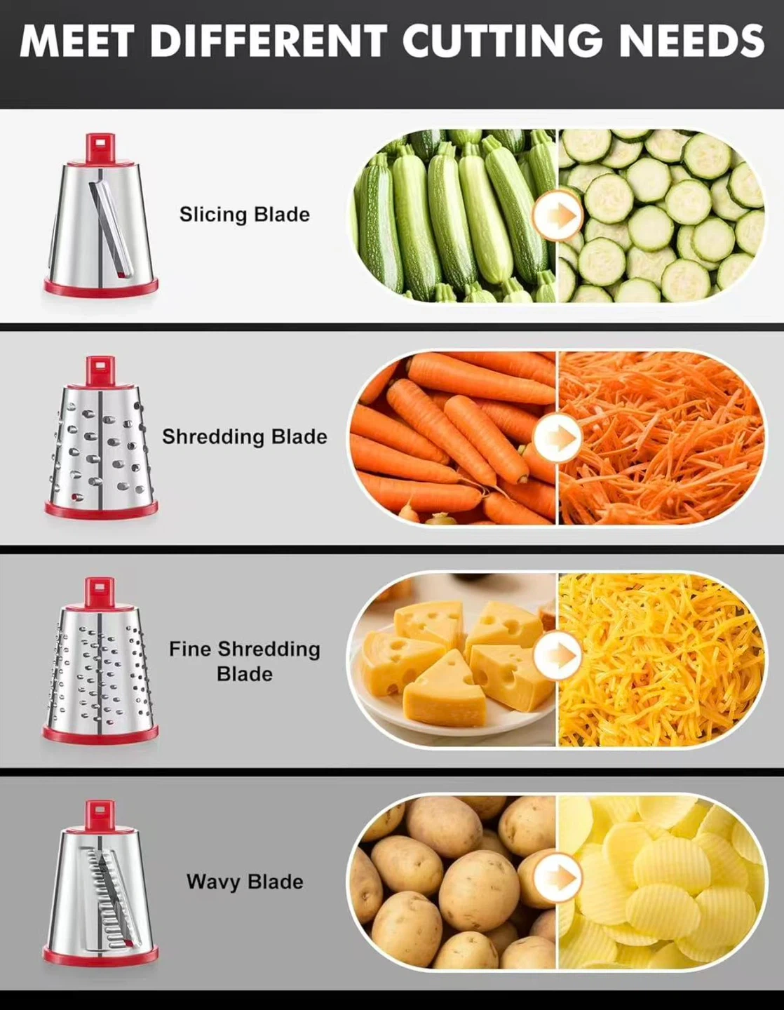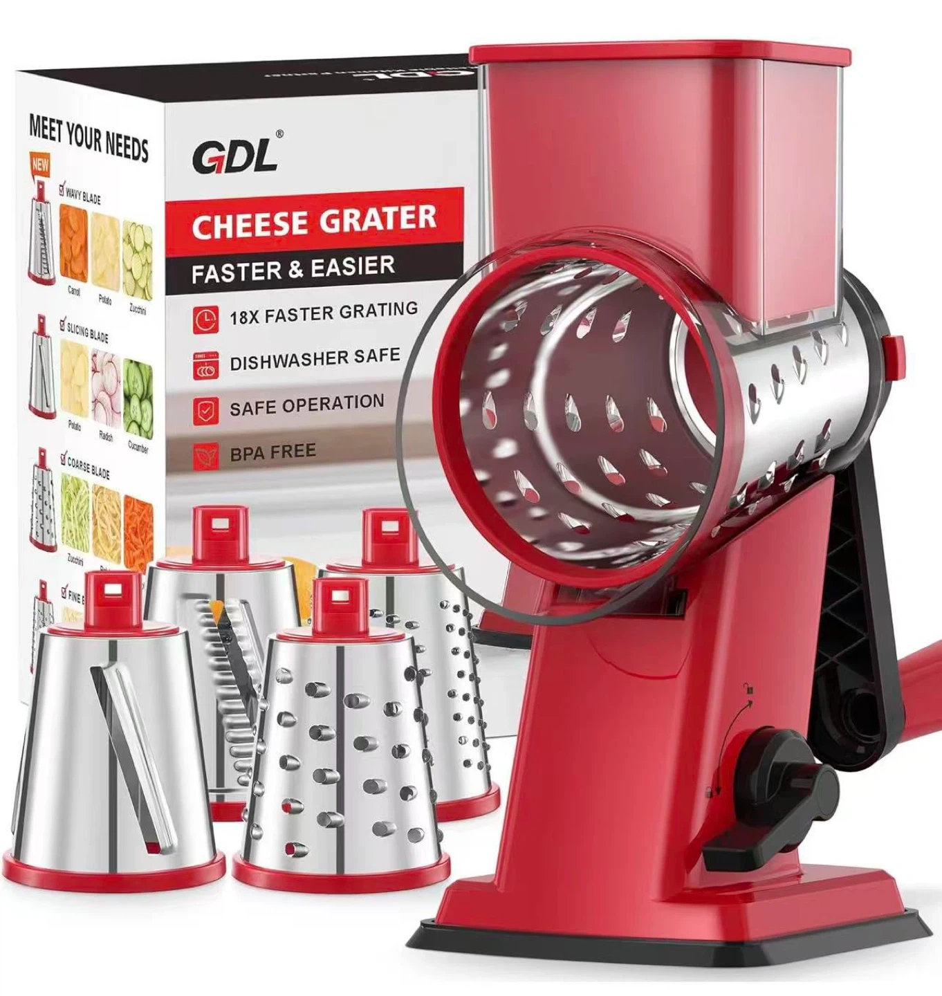 Rotary Cheese Grater with 4 Blades