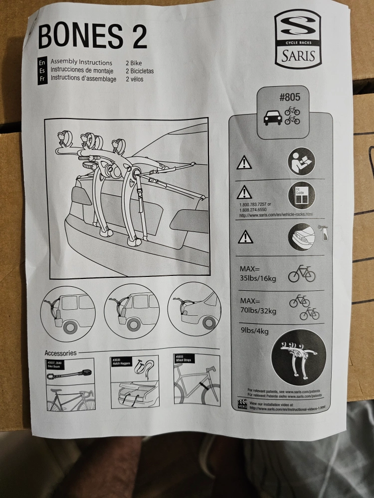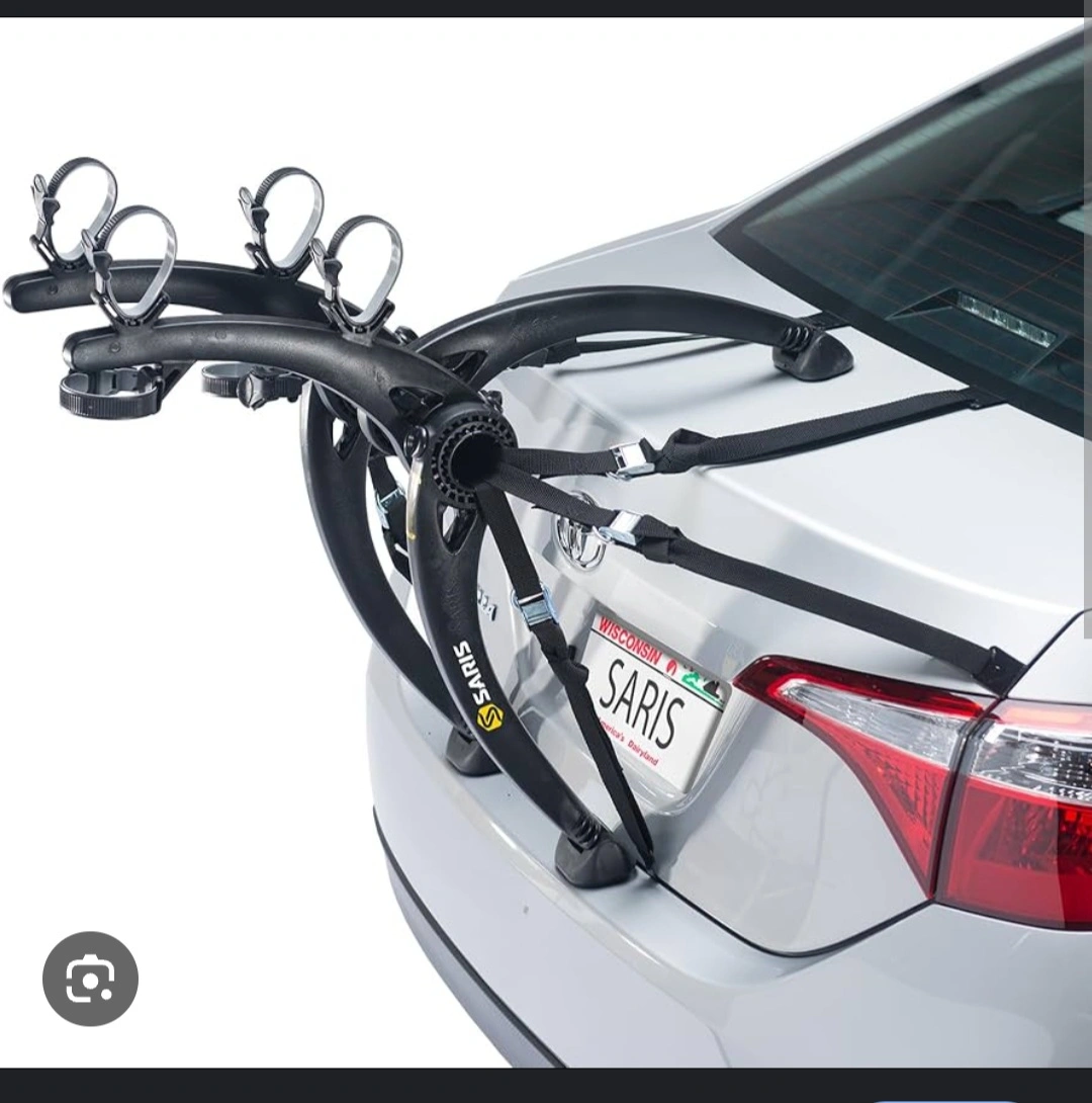 Trunk mounted bike rack for two bikes. Includes straps. New condition only used for 1 day.