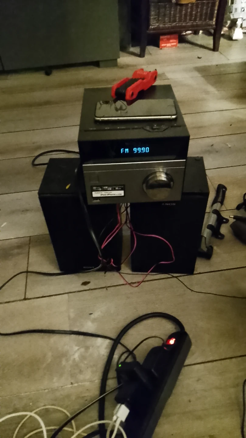 Sony micro Hi-Fi stereo system. Includes main unit and two black speakers. This unit supports FM radio and has CD/USB/iPod inputs. Great for small spaces!