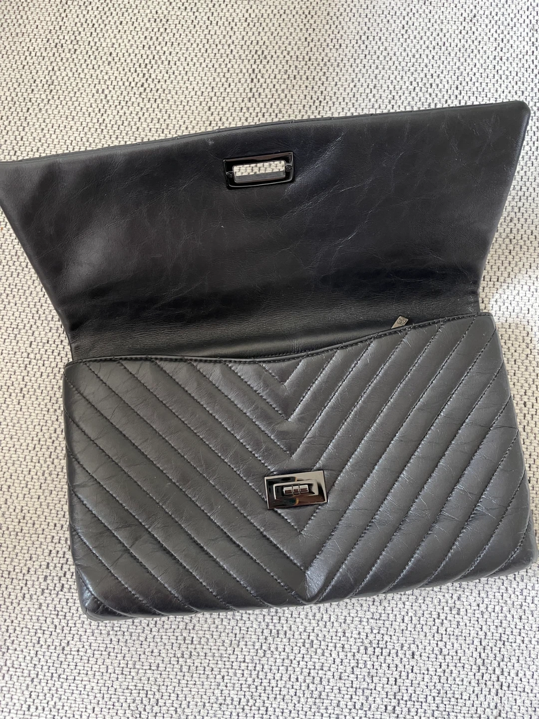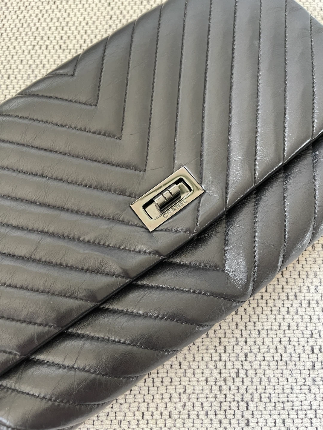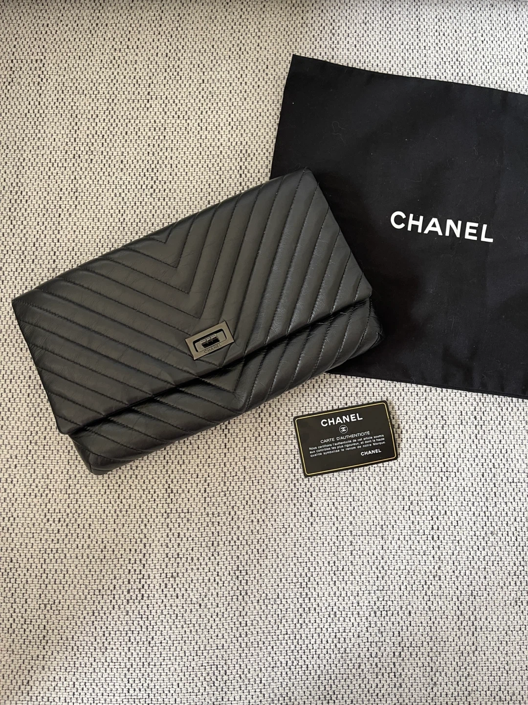 Selling a beautiful Chanel black leather clutch! It's in great condition and comes with its original dust bag and authenticity card. Perfect for a night out or special occasion!