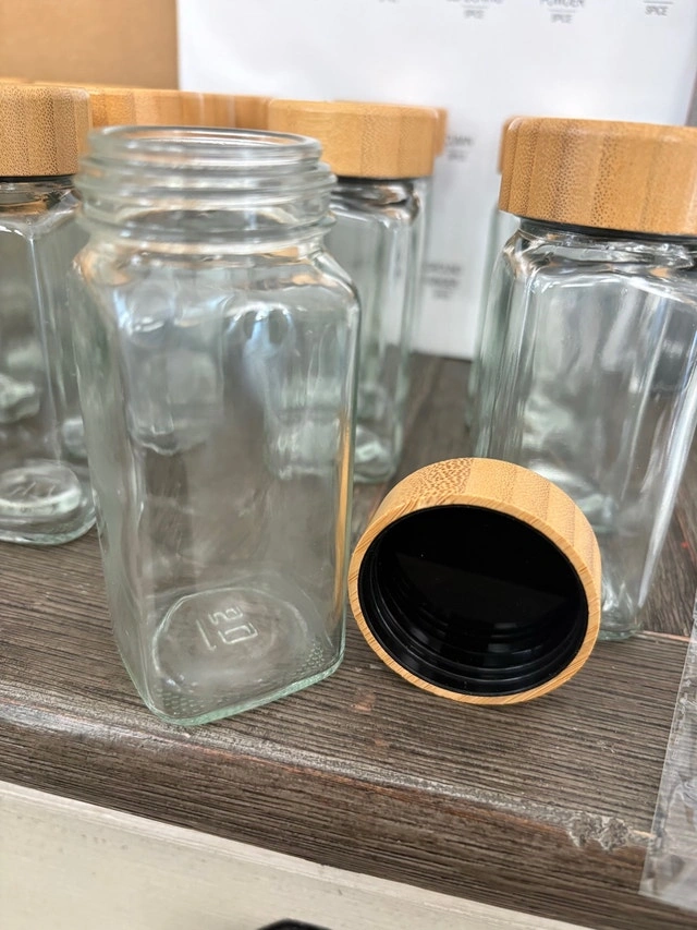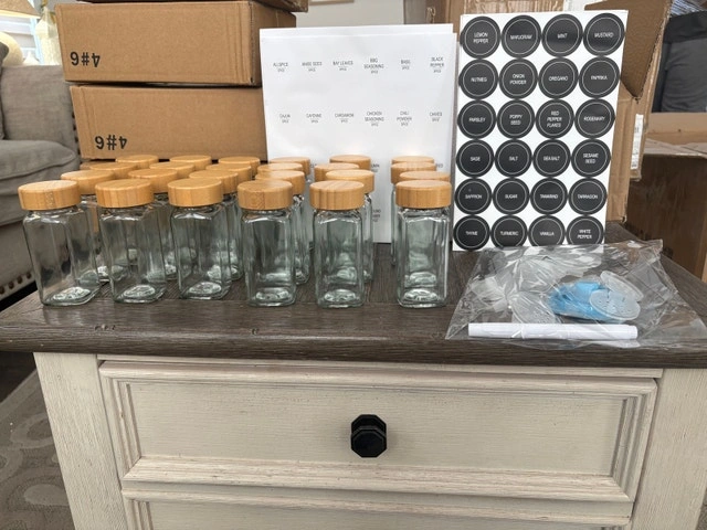 New in Box: 24pc 4oz Glass Spice Jars w/ Bamboo Lids