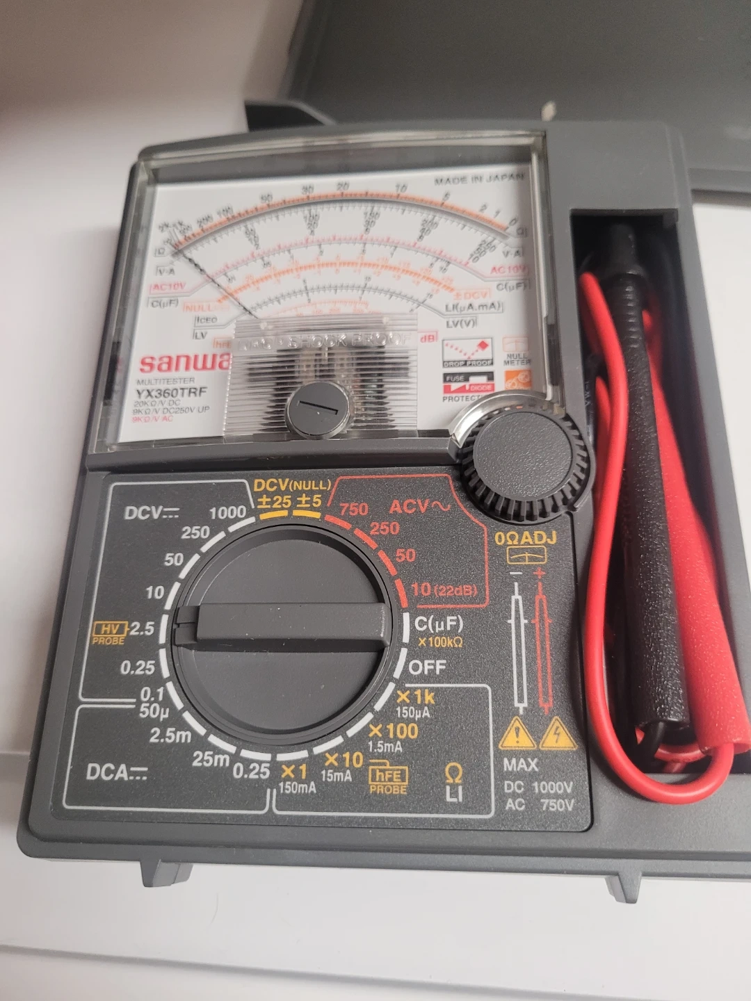 Selling a Sanwa YX-360TRF analog multimeter. It's in brand new condition and comes with its original case. This meter is great for electronics work and general testing. The case is also included