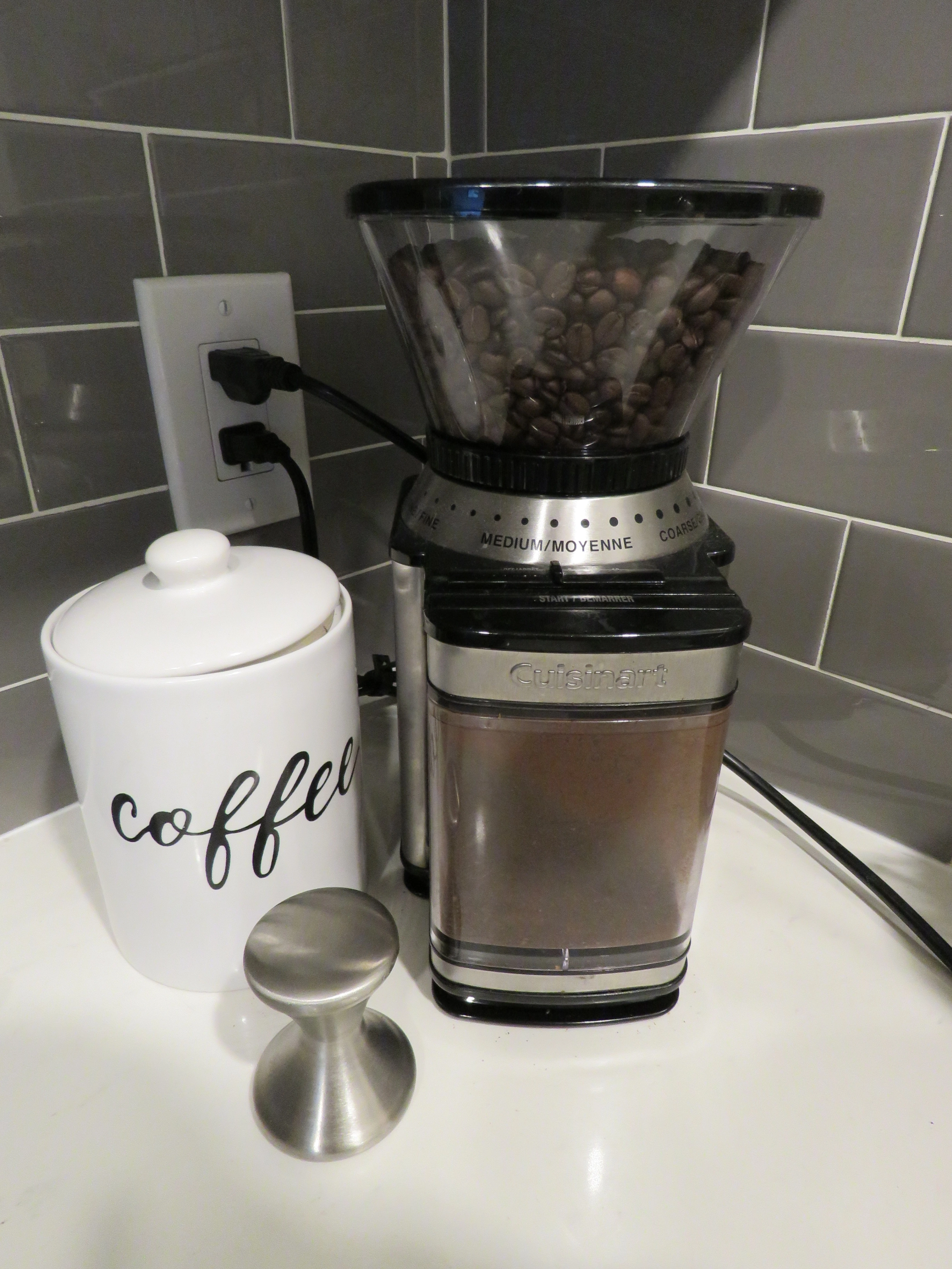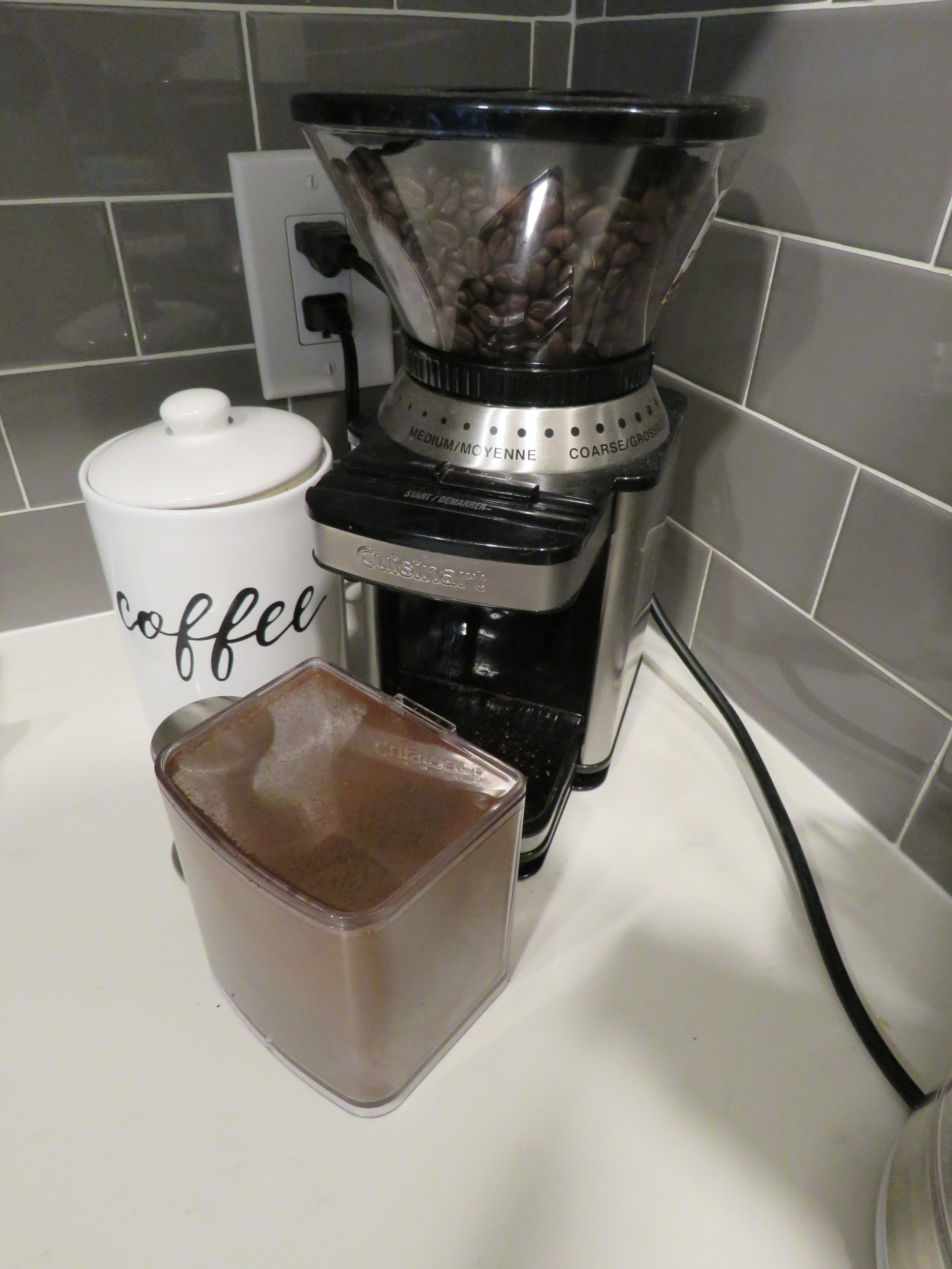 Cuisinart electric coffee grinder with one-touch automatic operation.