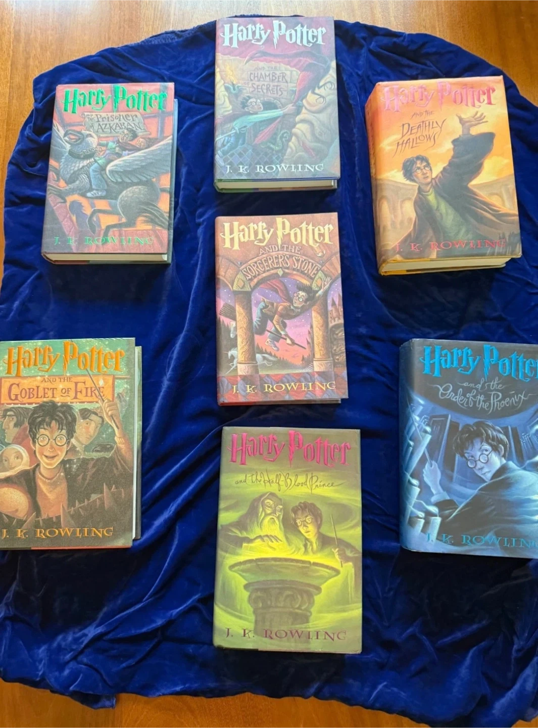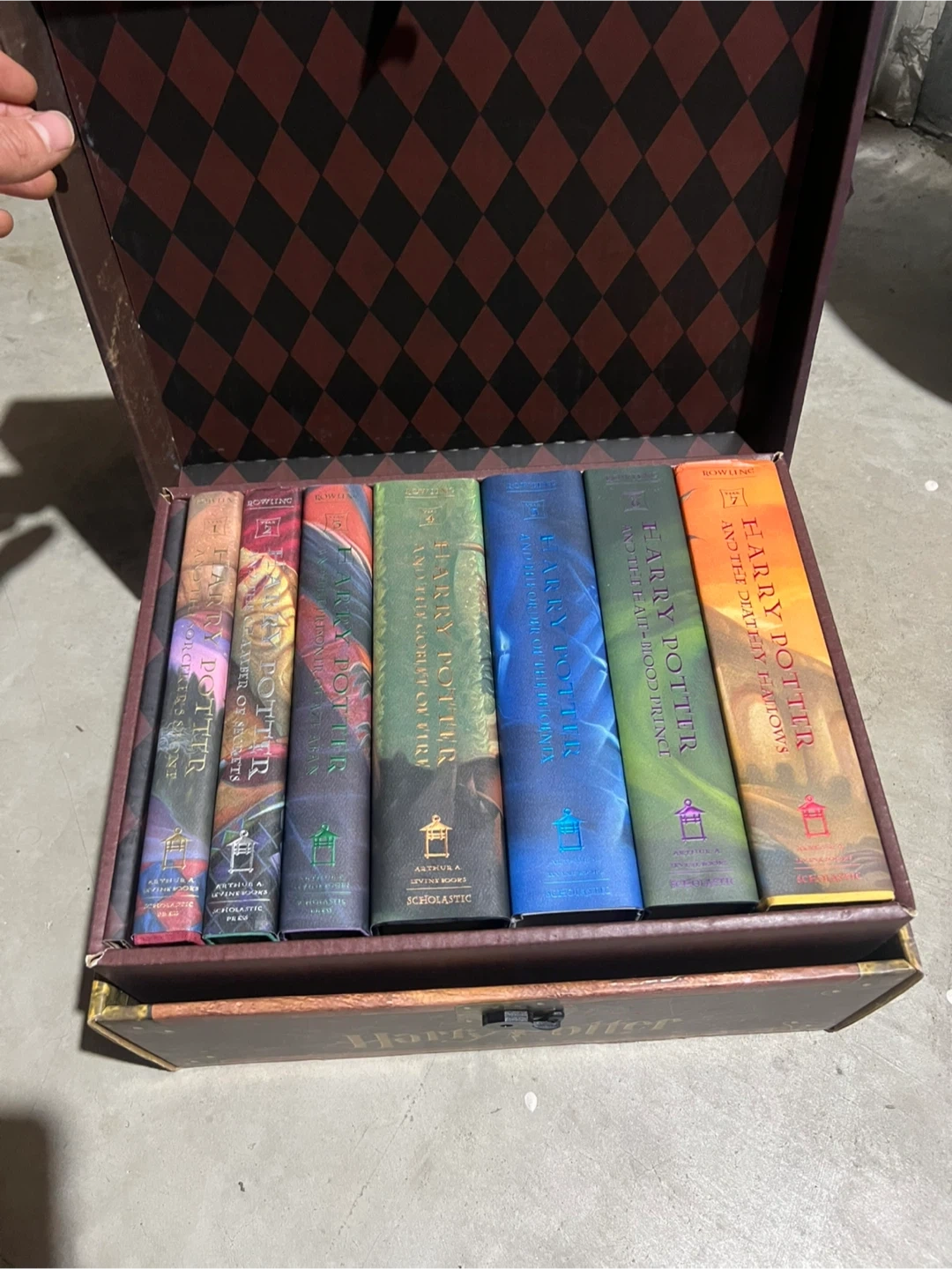 This is a complete set of the original Harry Potter books. It includes all seven novels presented in a decorative storage box. The books are paperback and feature the original cover art.