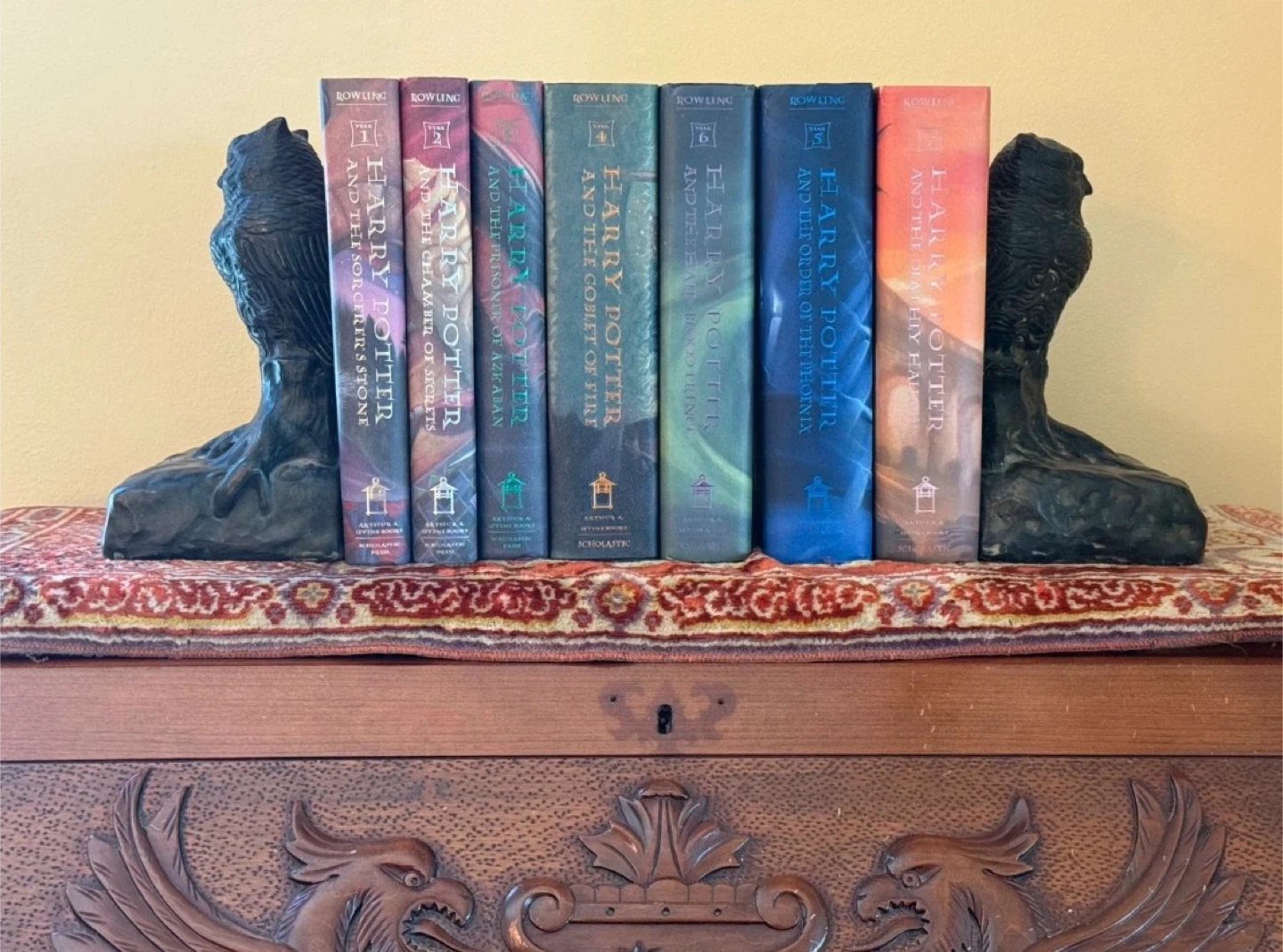 This is a complete set of the original Harry Potter books. It includes all seven novels presented in a decorative storage box. The books are paperback and feature the original cover art.