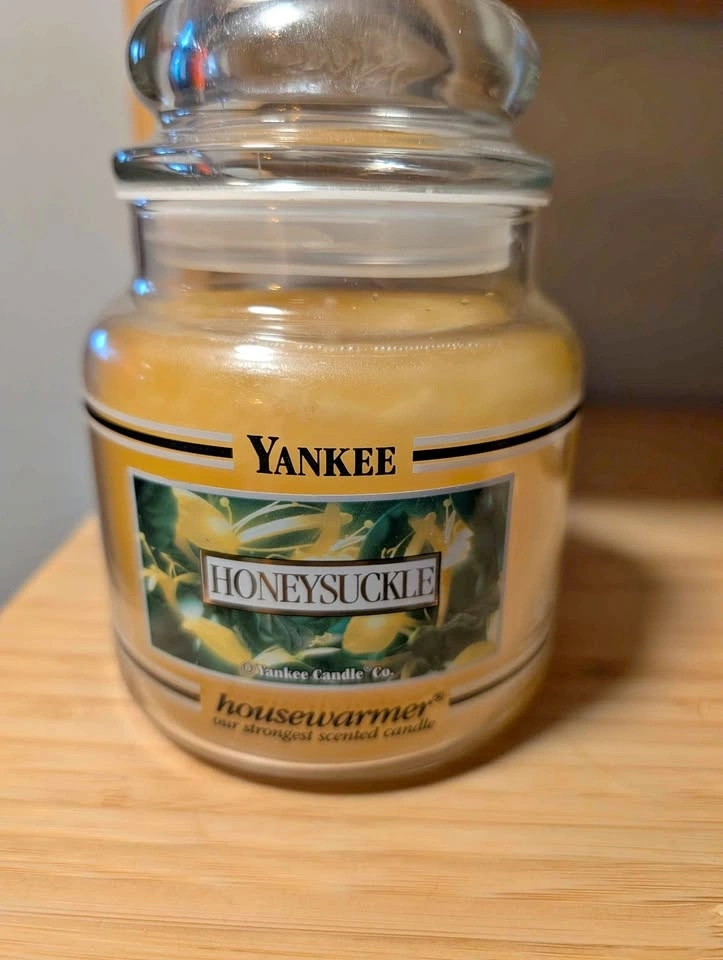 Retired Yankee Candle Honeysuckle Housewarmer candle. 14.5 ounces. Yankee candle's strongest scented candle. Long burn time. Pickup in central St Catharines.