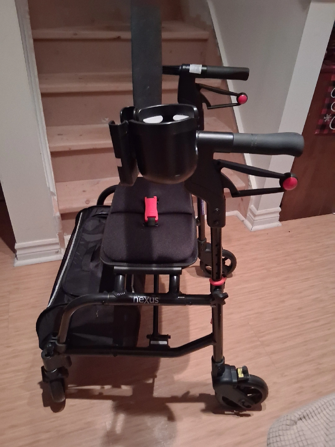 Selling a Nexus walker in great condition! It comes with a seat and a basket, perfect for getting around comfortably. It's black and easy to maneuver. It has a cup holder that has supported many a cup of tea and both locking mechanisms are functional. It is about a year old.