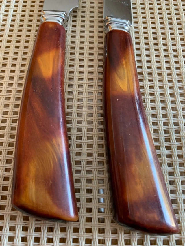 Glo Hill vintage knives with Bakelite handles. Made in Canada. In great condition. Pick up available at Winston Churchill Blvd and Burnhamthorpe Rd W in Mississauga.