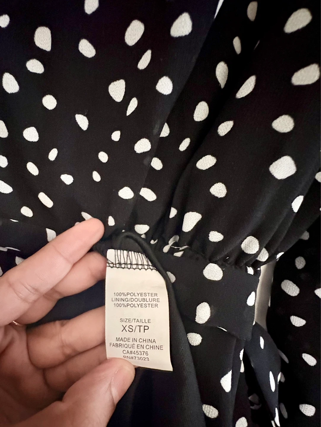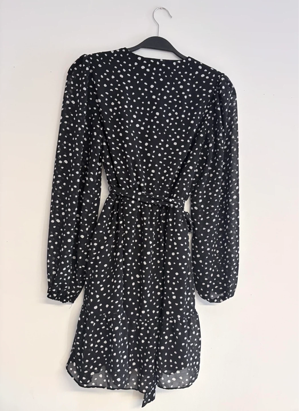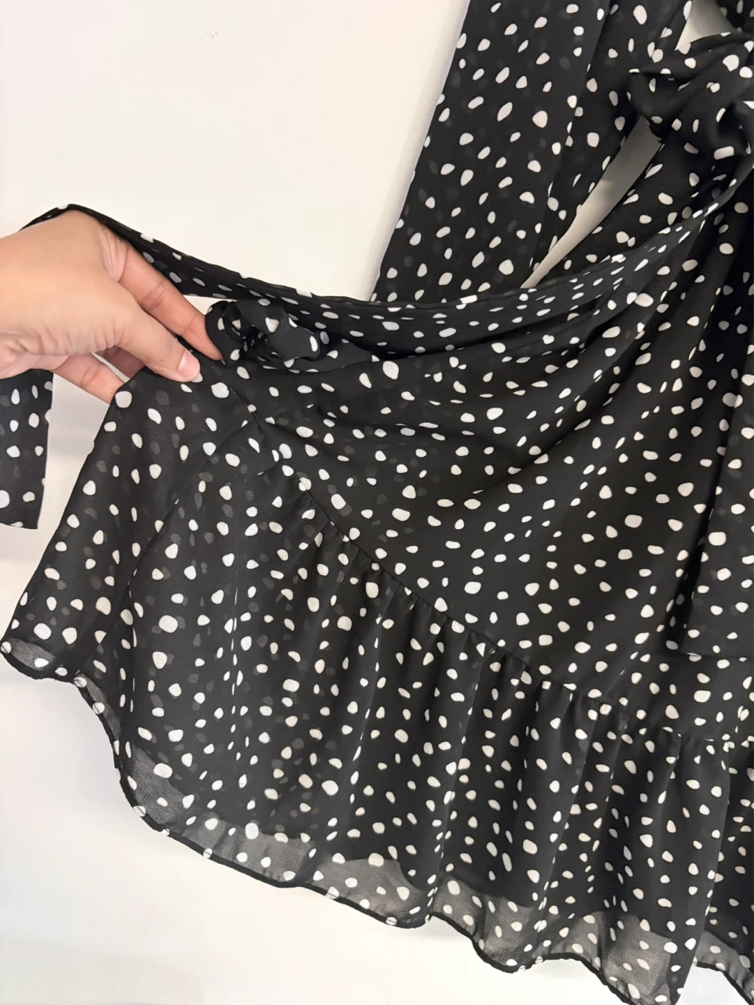 Wrap-style midi dress with long sleeves and a tiered hem.