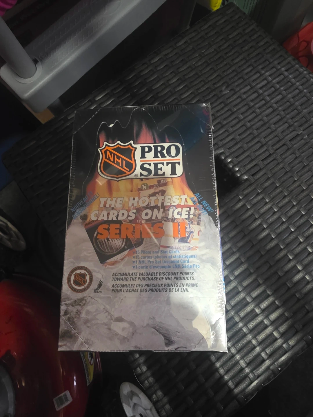 This is a sealed box of NHL Pro Set Series II hockey cards. It includes 15 Photo and Stat cards and 1 NHL Pro Set Discount Card. Accumulate valuable discount points toward the purchase of NHL products.