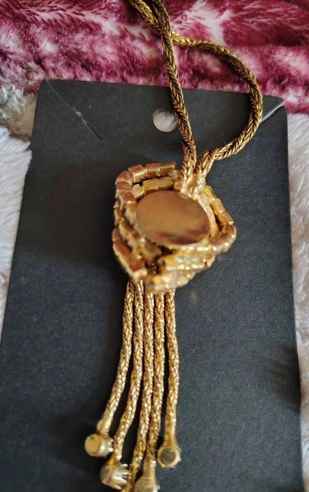Rare Vintage 70s UNSIGNED HOBE NECKLACE DANGLING DROPS GOLD PLAT