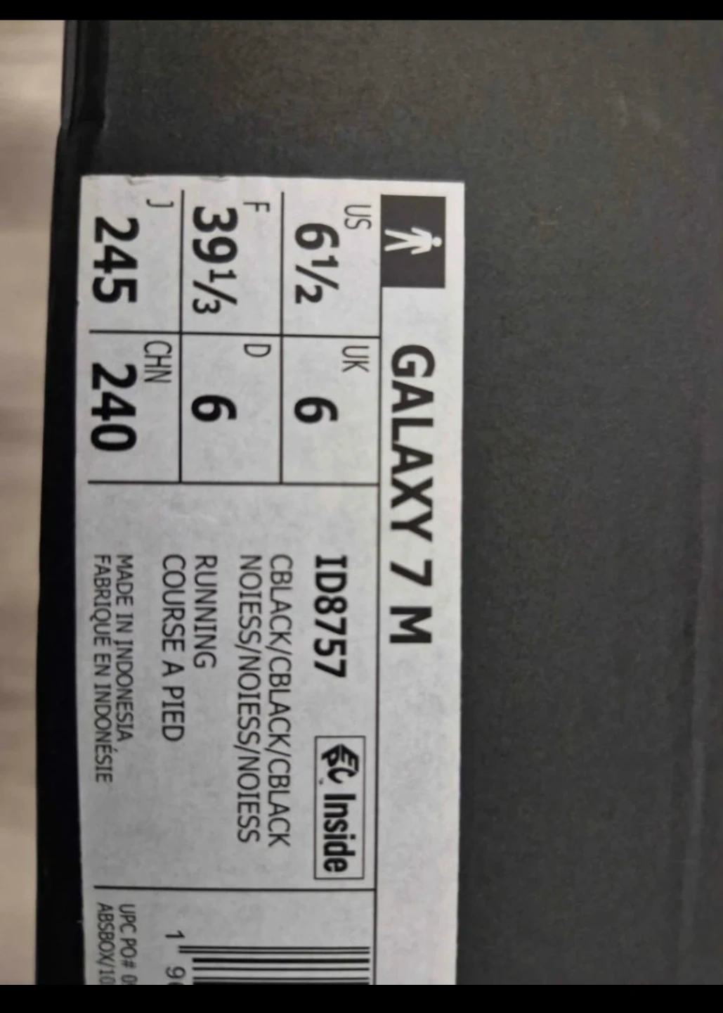 Selling a pair of Adidas Galaxy 7 M running shoes in black.