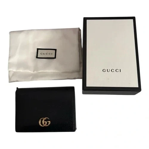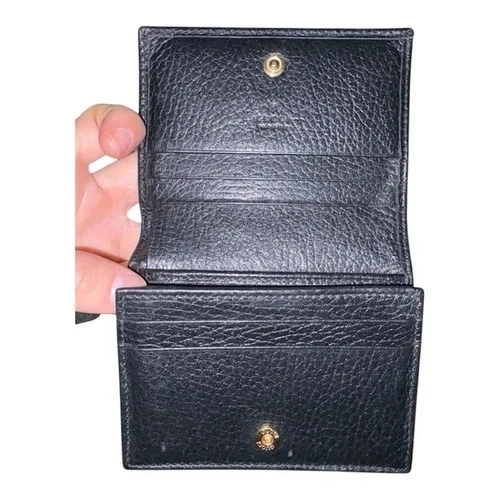 GUCCI GG Marmont Black Pebbled Leather Case Small Wallet