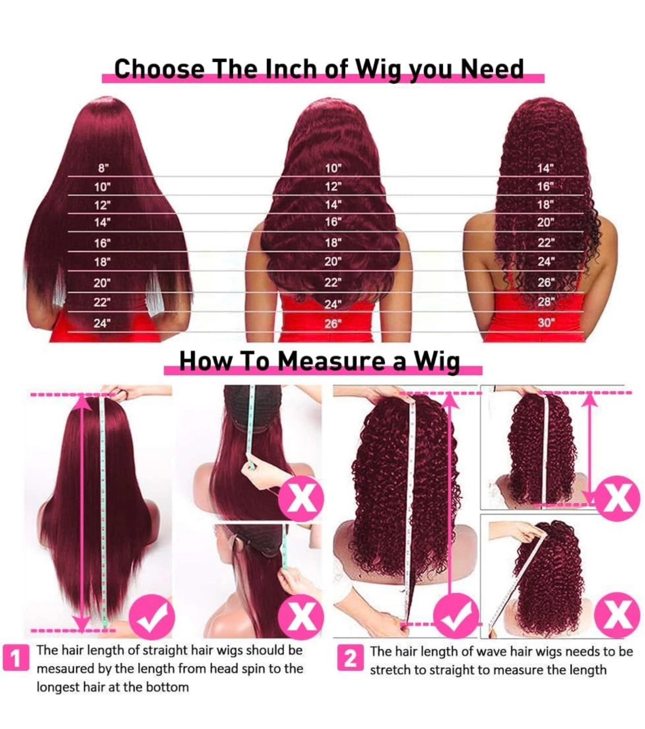 Burgundy Red 13x4 Lace Front Wig, Deep Wave, Many Styles