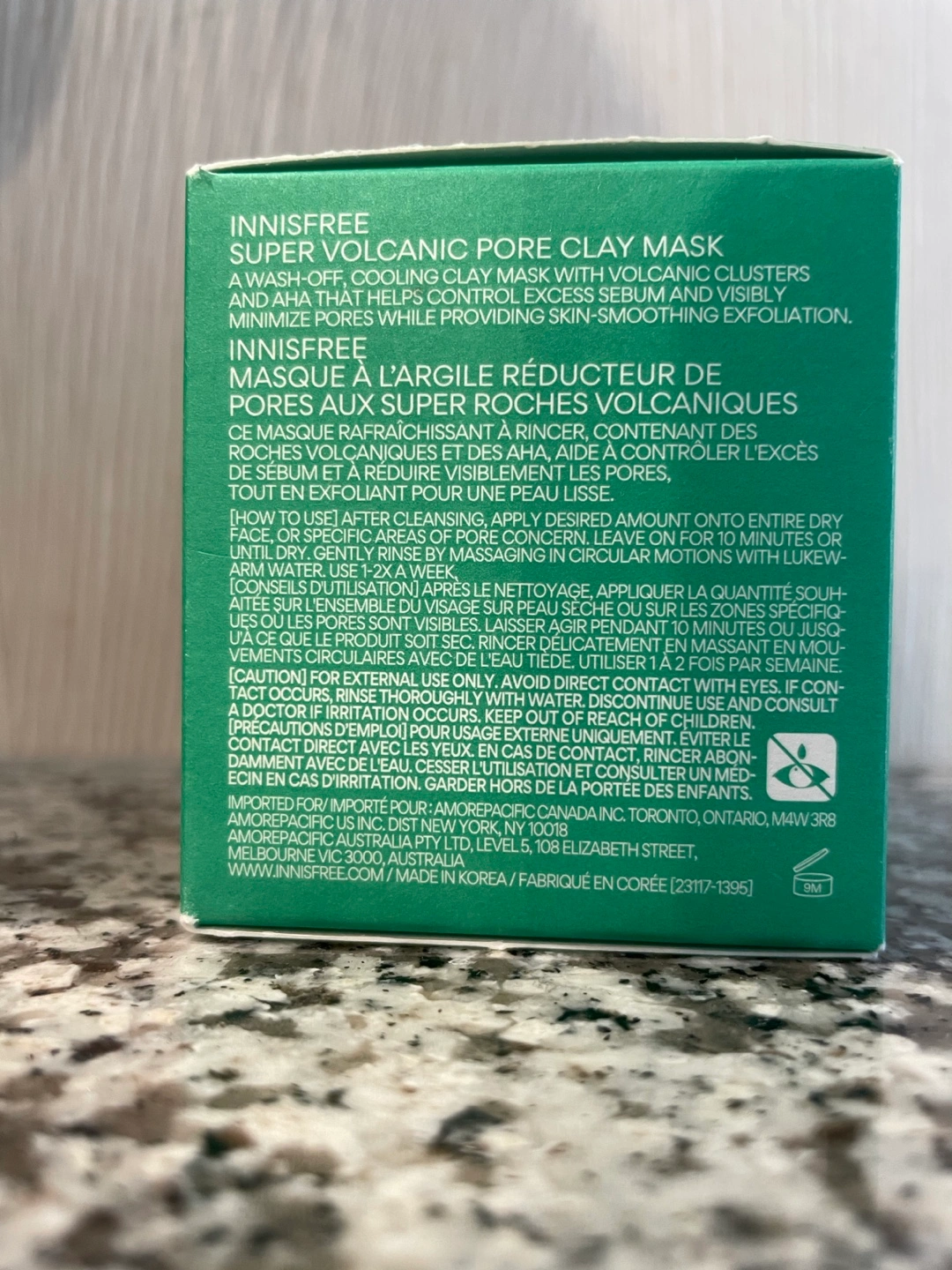 Selling an Innisfree Super Volcanic Pore Clay Mask! It comes in its original box and contains 100mL of product. A wash-off mask with volcanic clusters and AHA that helps control excess sebum and visibly minimize pores while providing skin-smoothing exfoliation. It's great for keeping your skin looking its best! Never used.