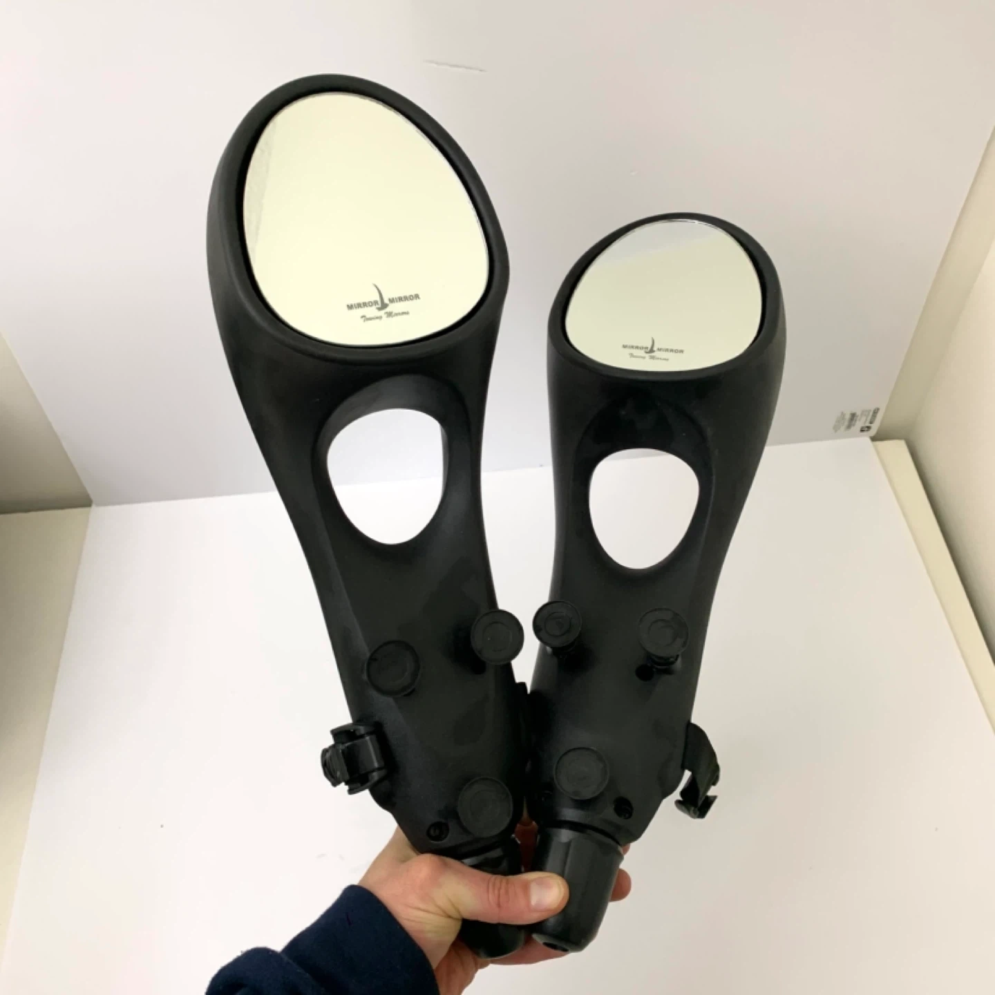 Set of two black towing mirrors. Made for enhanced visibility.