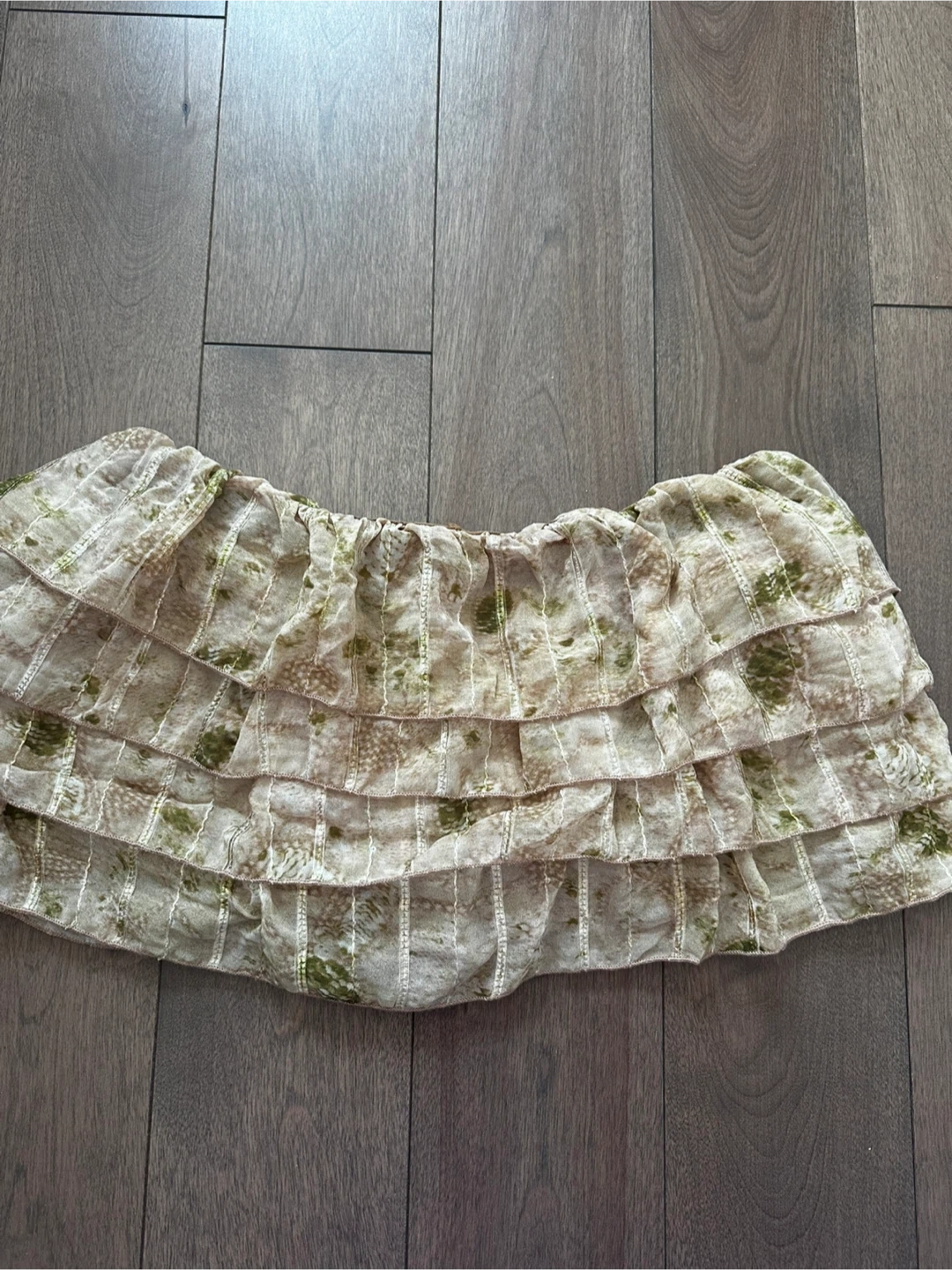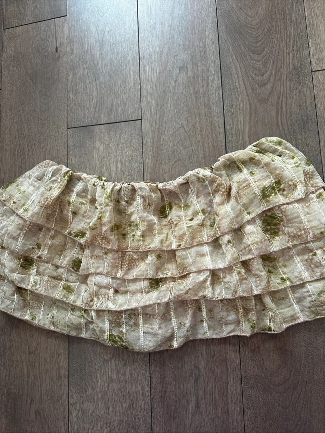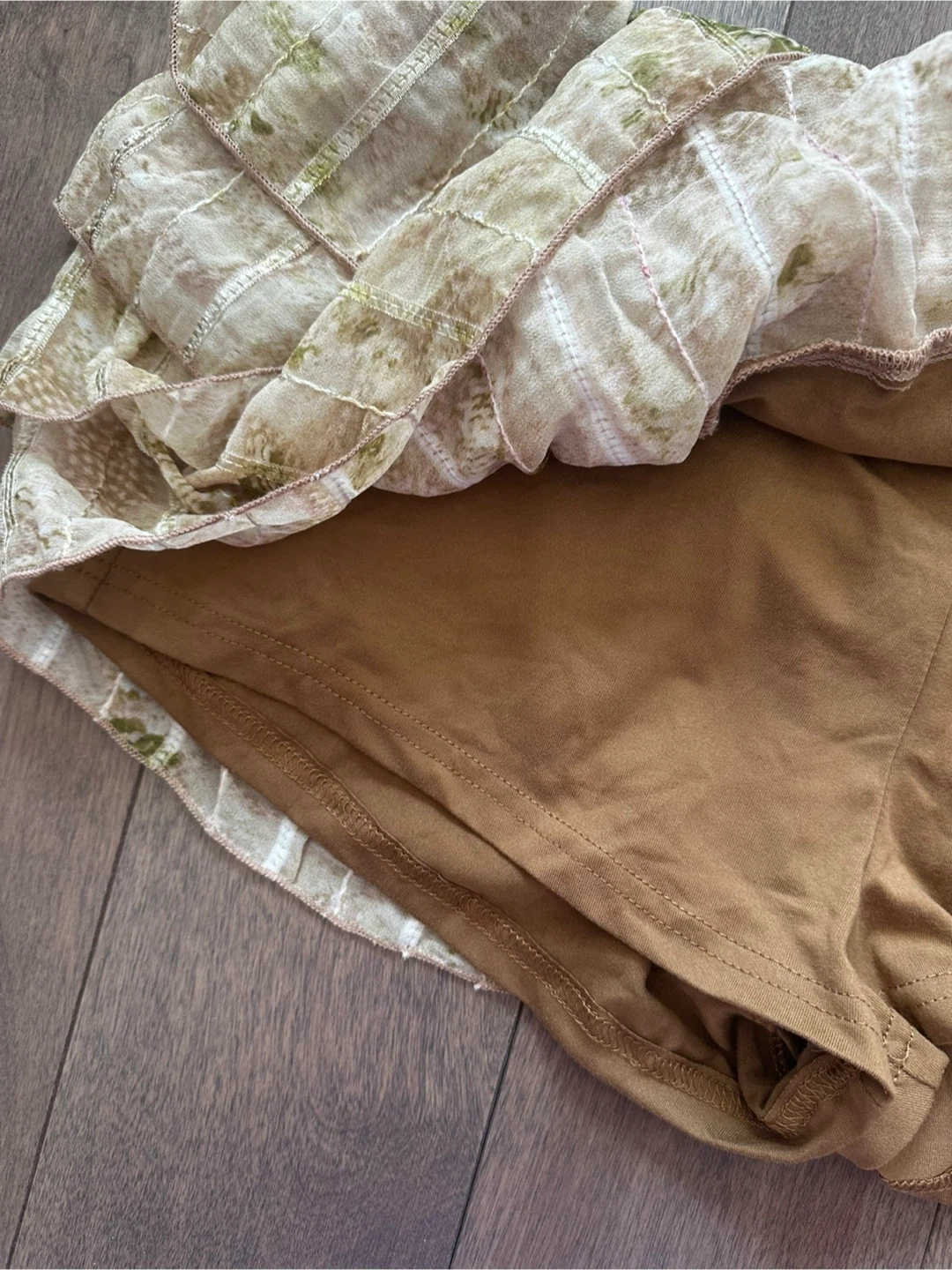 Missguided Tiered Ruffle Mini Skort - Brown/Green