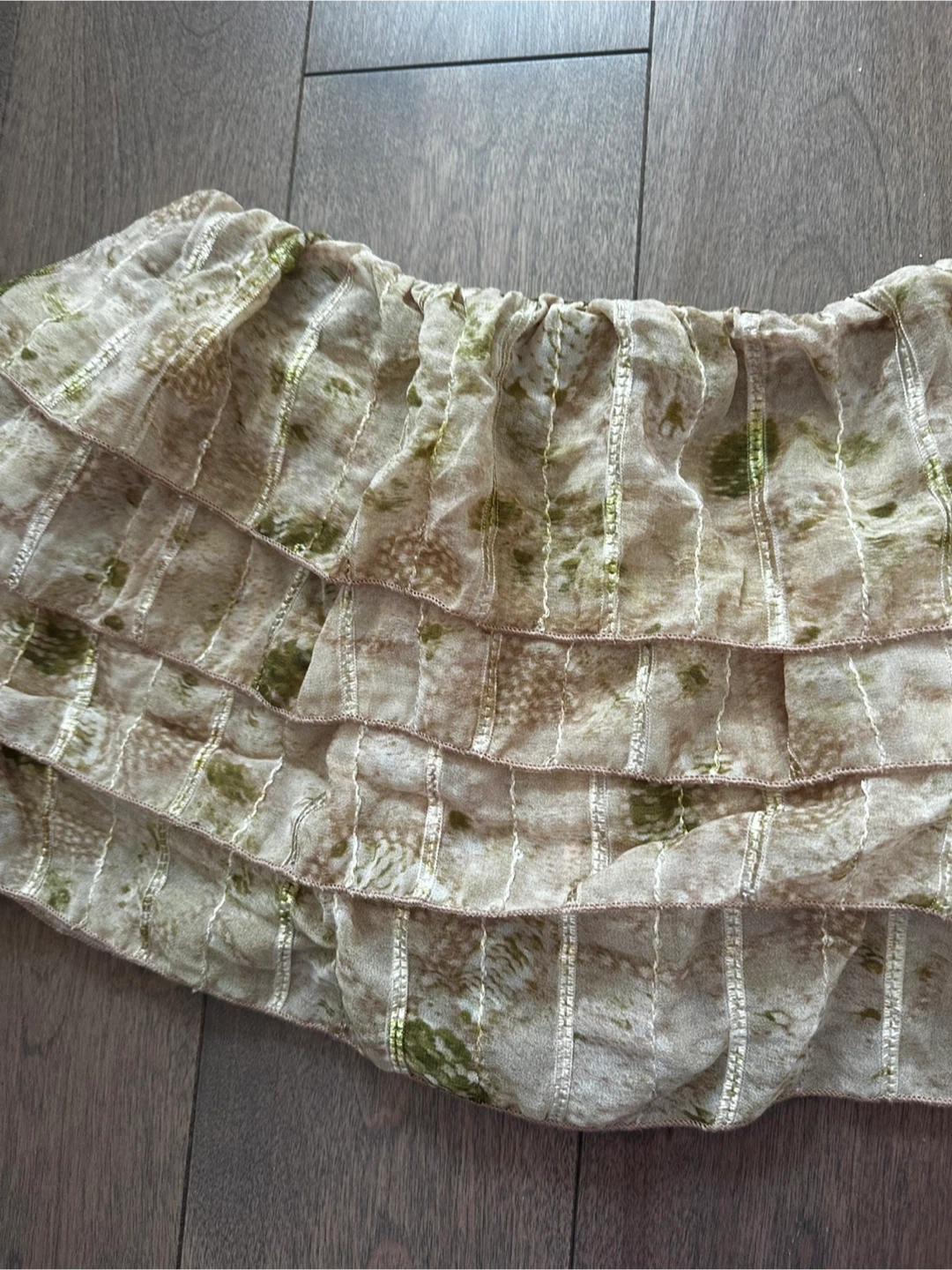 Missguided Tiered Ruffle Mini Skort - Brown/Green