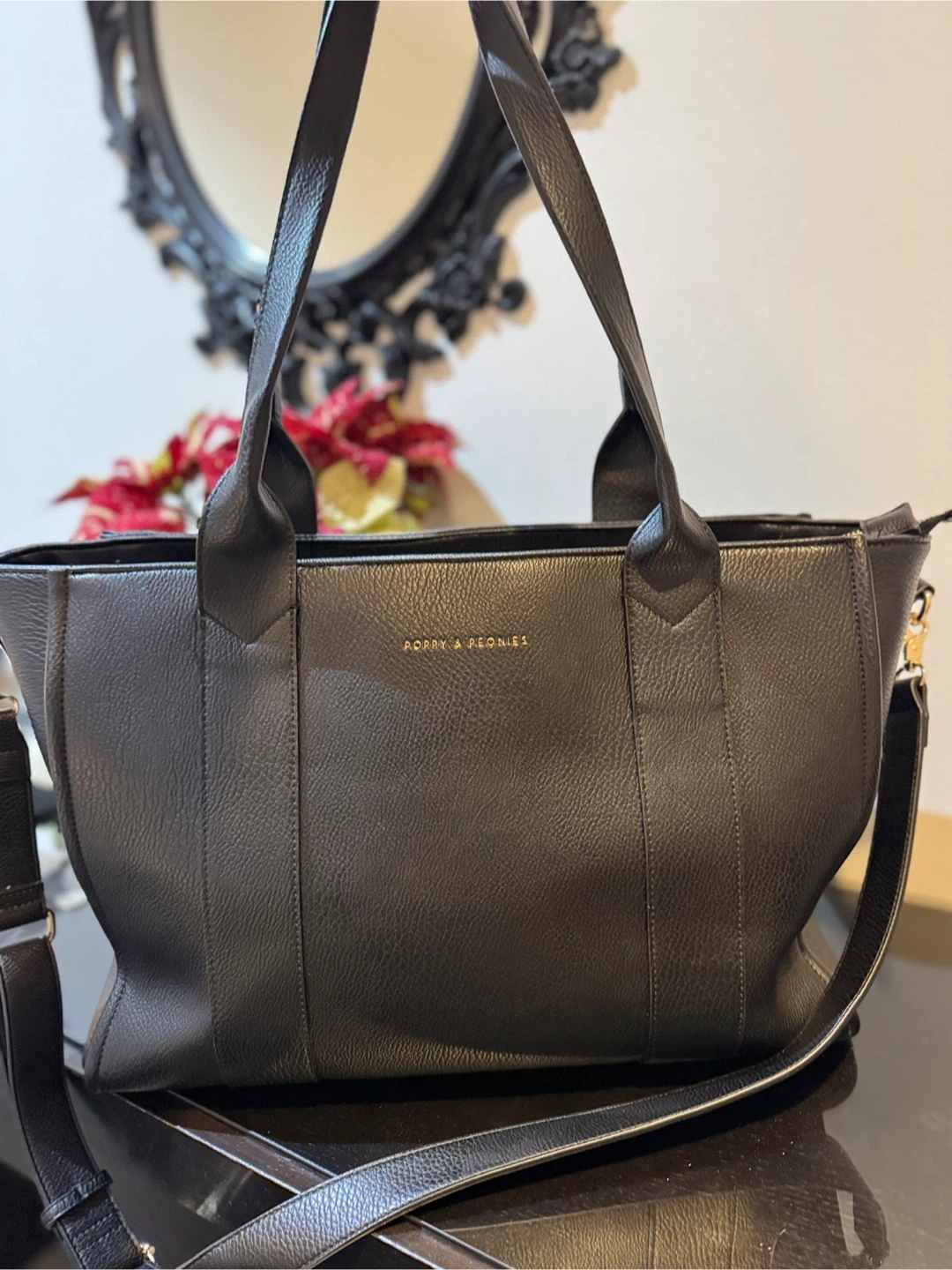Selling a stylish black tote bag from Poppy & Peonies! It's in great condition and ready for a new owner. Perfect for everyday use or as a laptop bag. Only used once for a business trip.