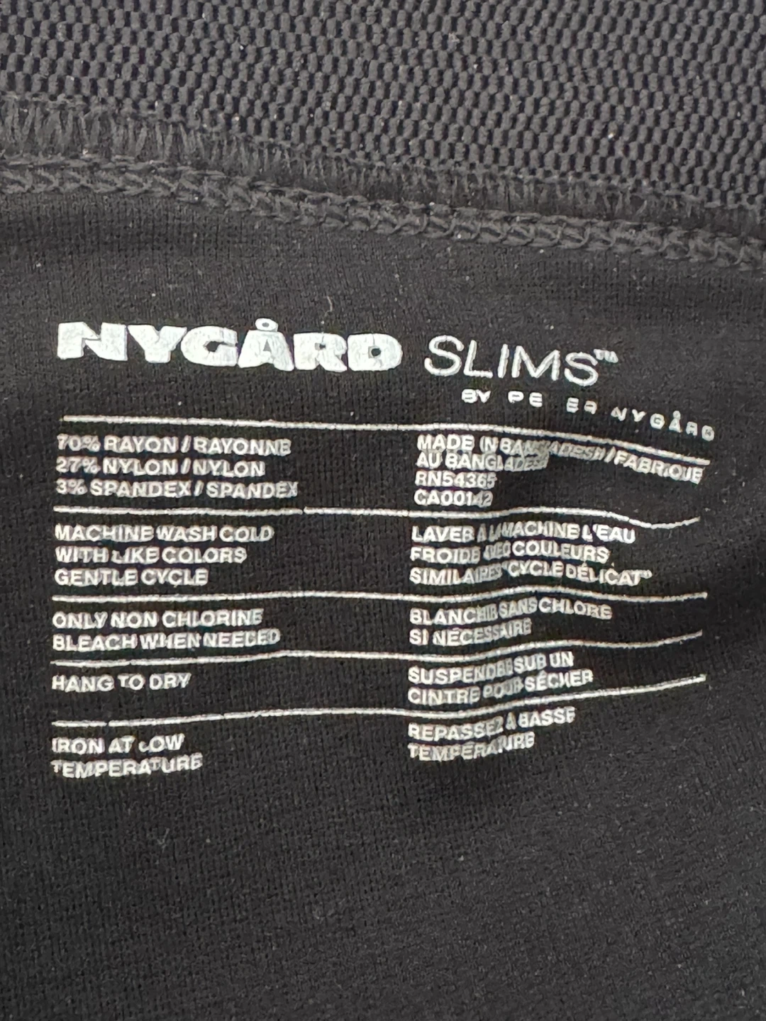 Selling a pair of Nygard Slims black bootcut pants in size XL (18-20). They're made of 70% rayon, 27% nylon, and 3% spandex, so they're super comfy! Machine wash cold and hang to dry for easy care