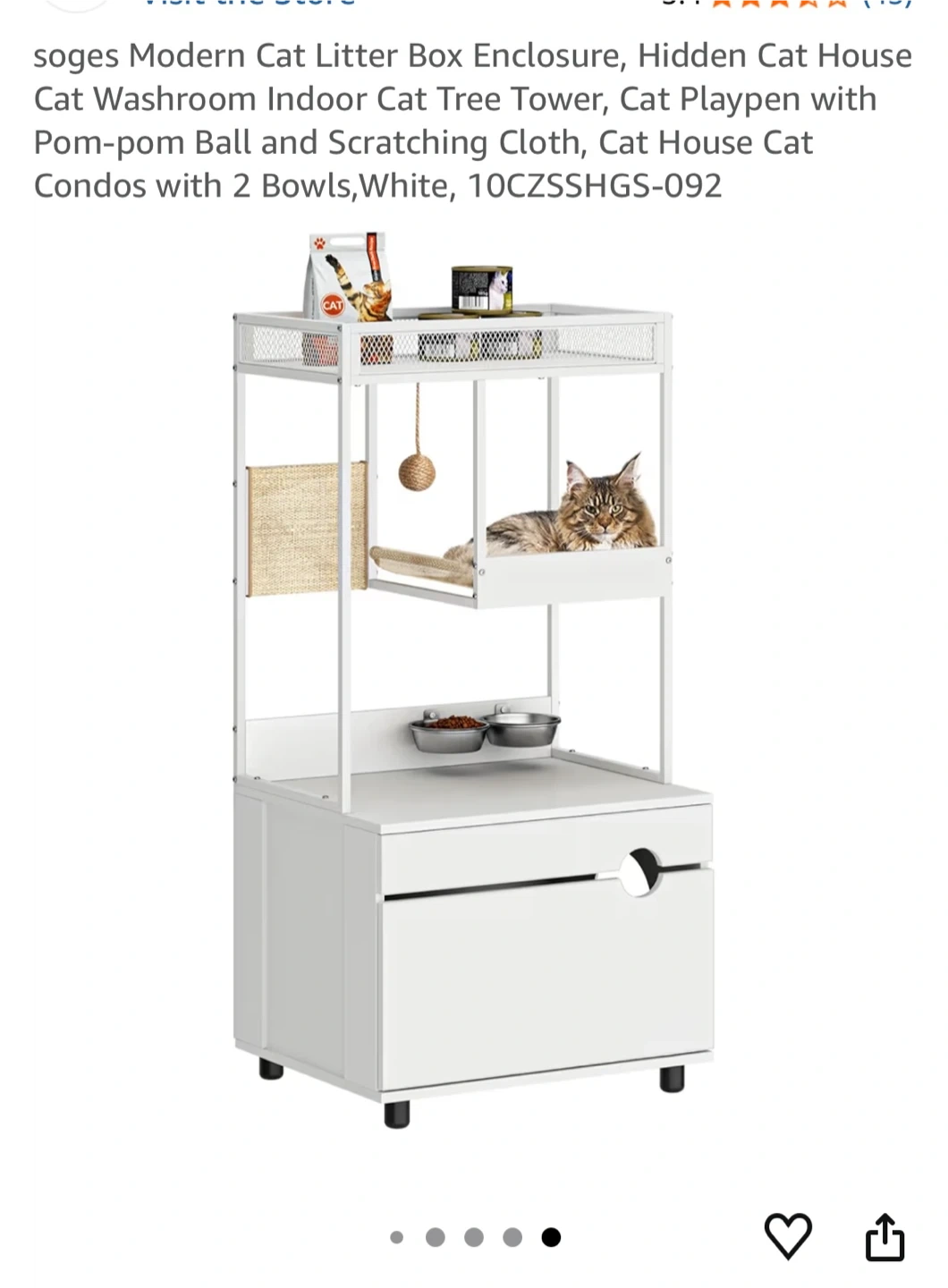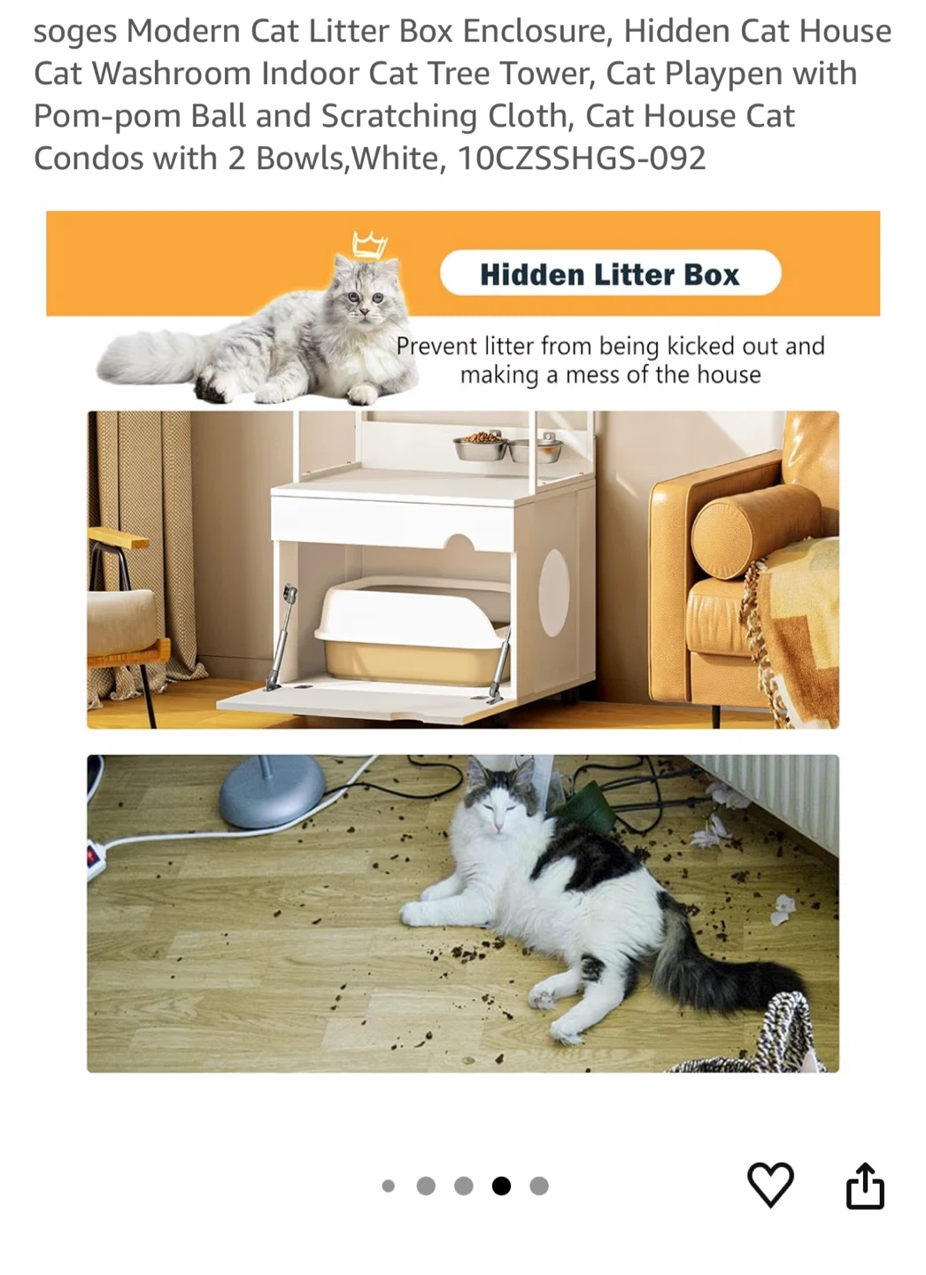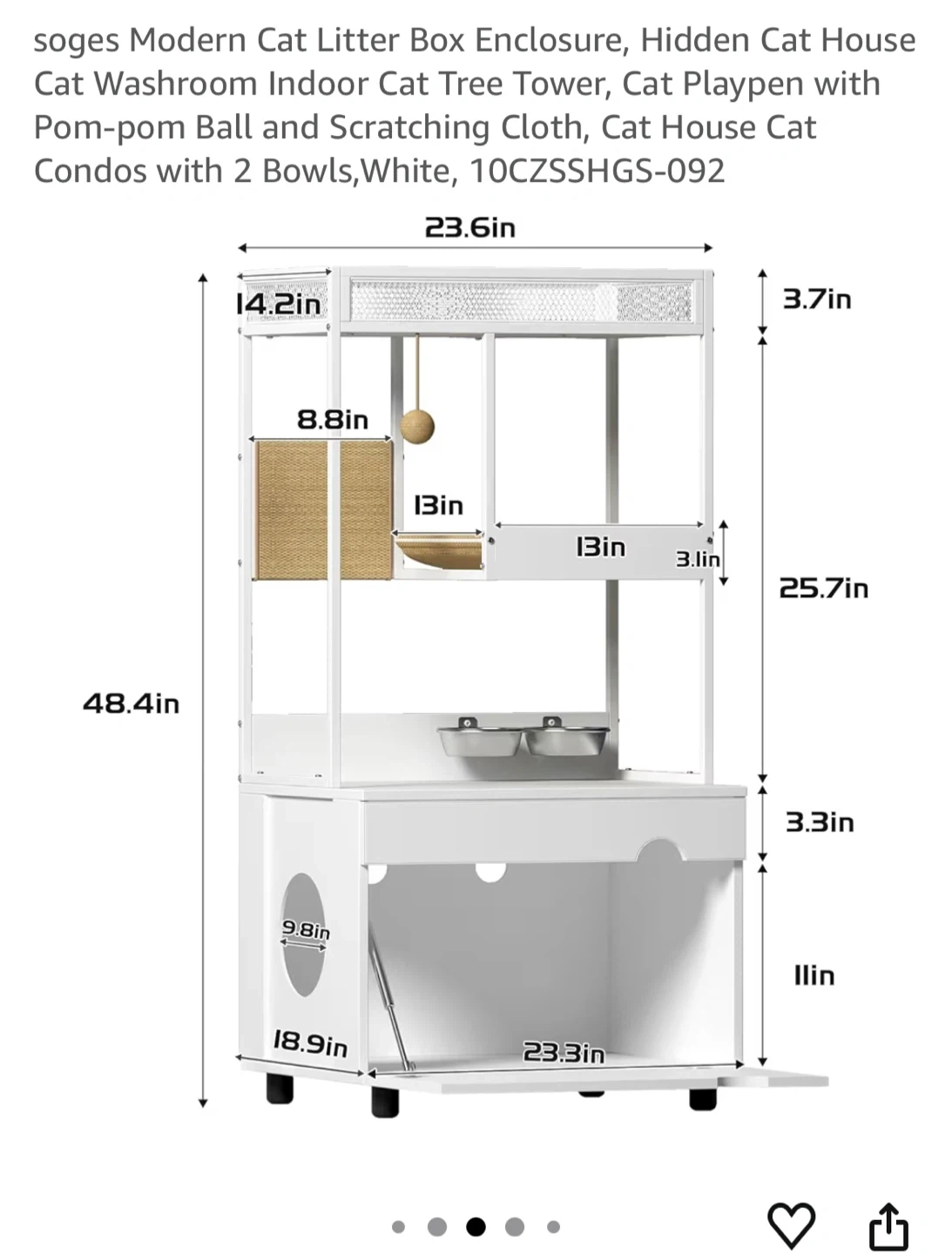This multi-functional cat furniture includes a hidden litter box enclosure, scratching areas, and elevated perches. It's designed to keep your space tidy while providing your feline friends with a place to play and rest.
