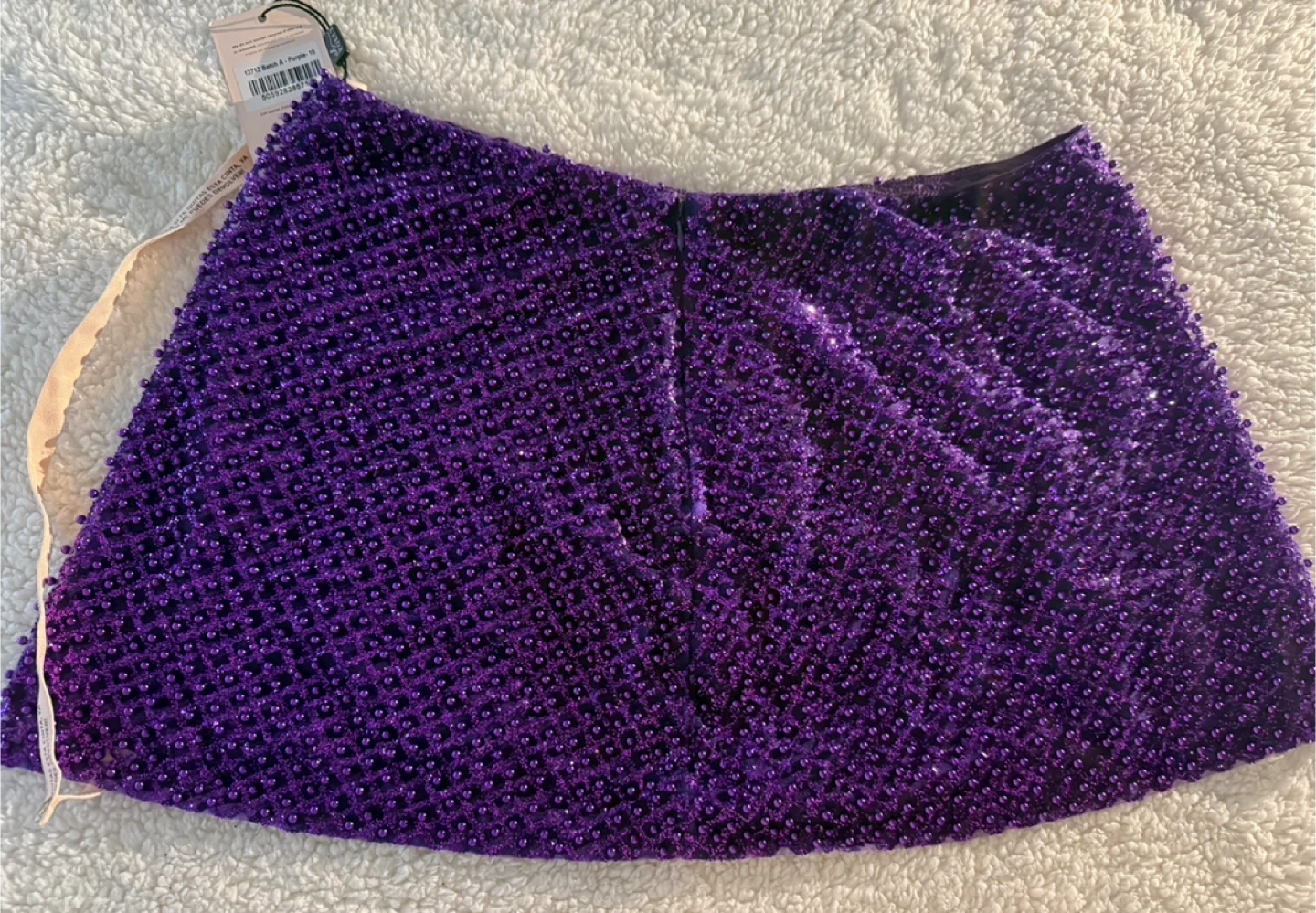 Selling a oh Polly mini skirt in purple, size 14. It features beaded detailing and a heart cutout. Perfect for a night out!