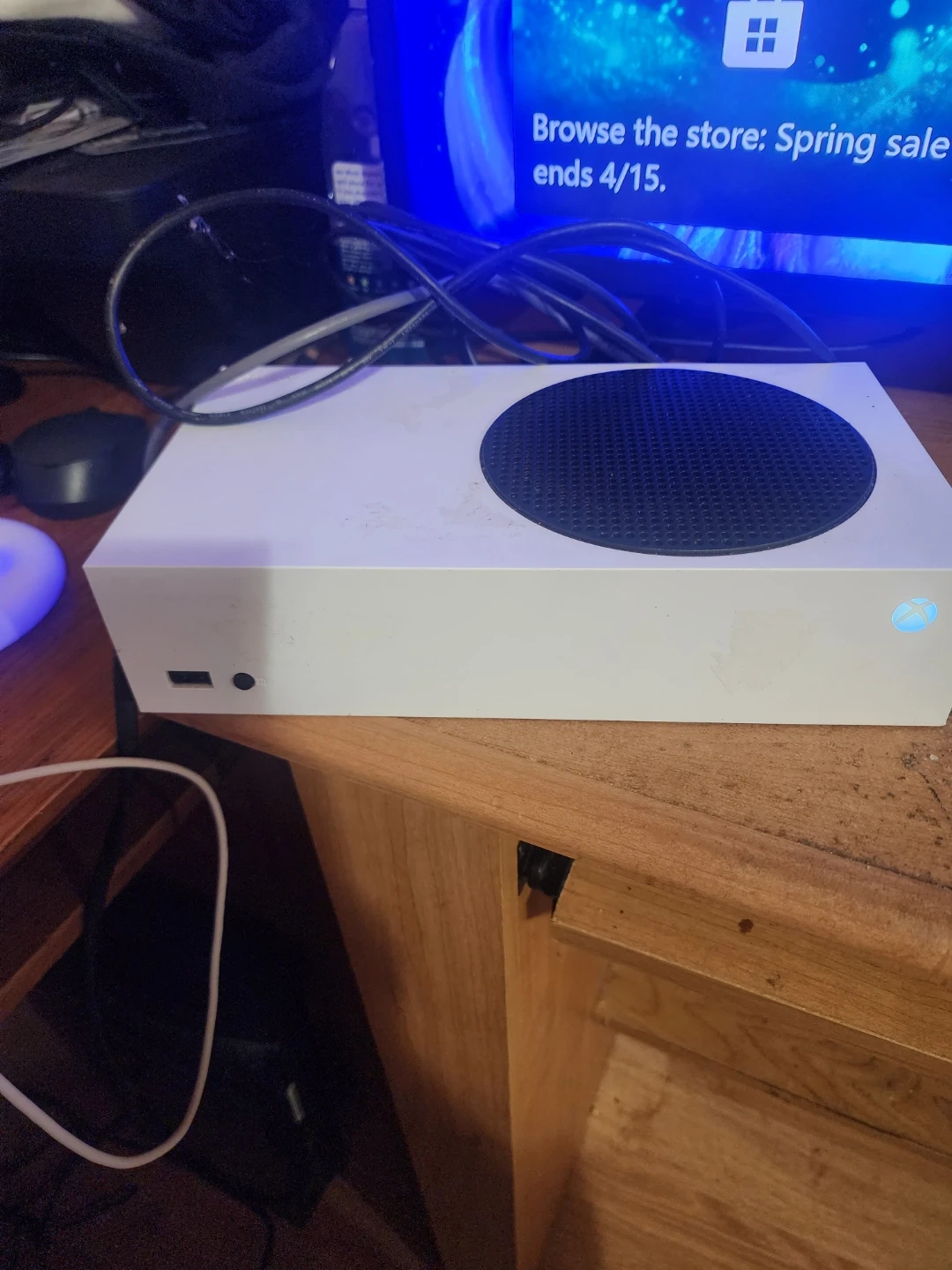 This is an Xbox Series S console. It's a digital-only gaming system. It comes in white. No controller sadly