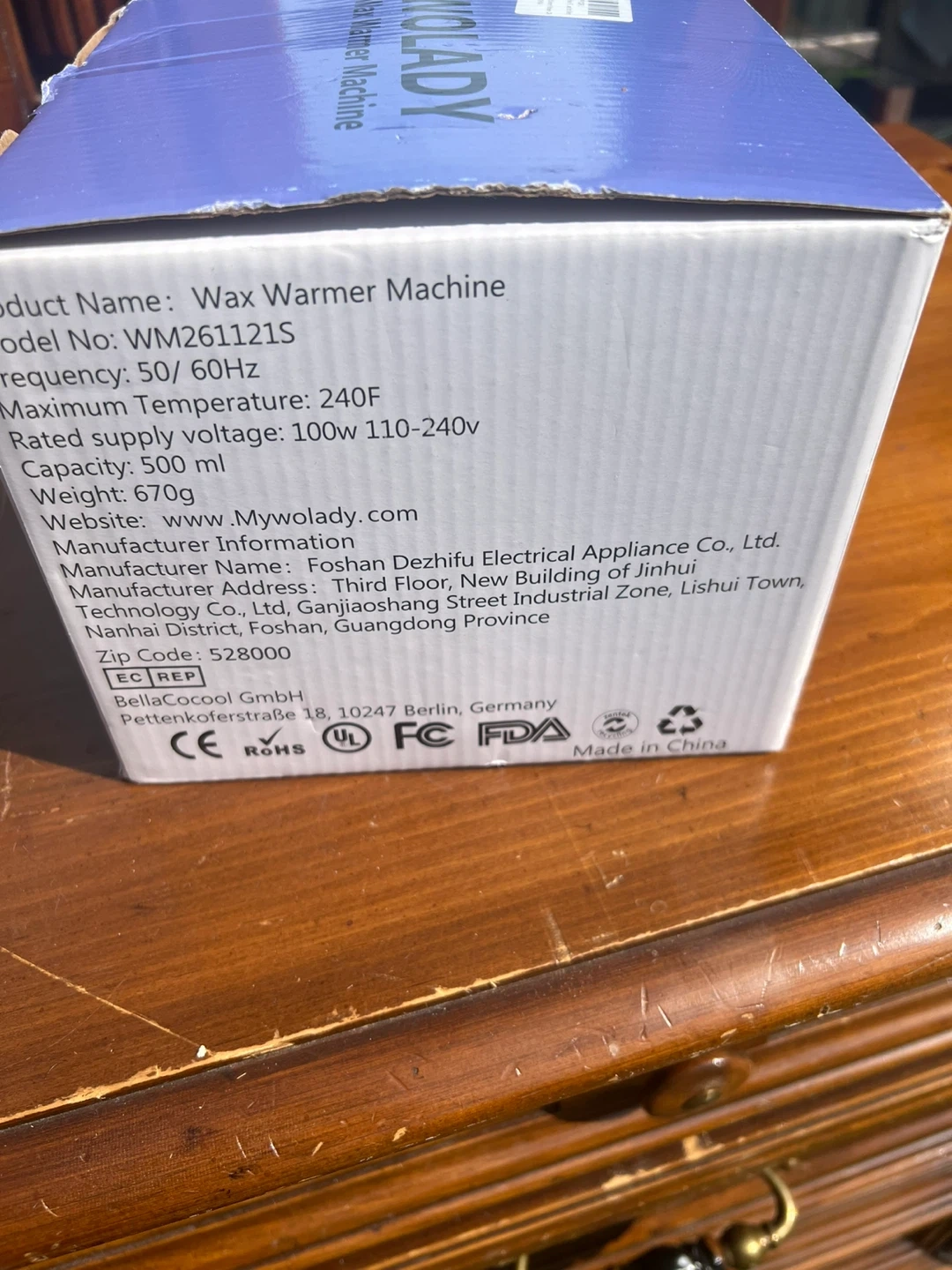 Selling a brand new Wolady Wax Warmer Machine, still in its original box! This wax warmer has a capacity of 500 ml and is designed for use on the face, legs, arms, armpits, bikini area, and feet. It operates at 50/60Hz with a maximum temperature of 240F and a rated supply voltage of 100W 110-240V. Get smooth skin at home!