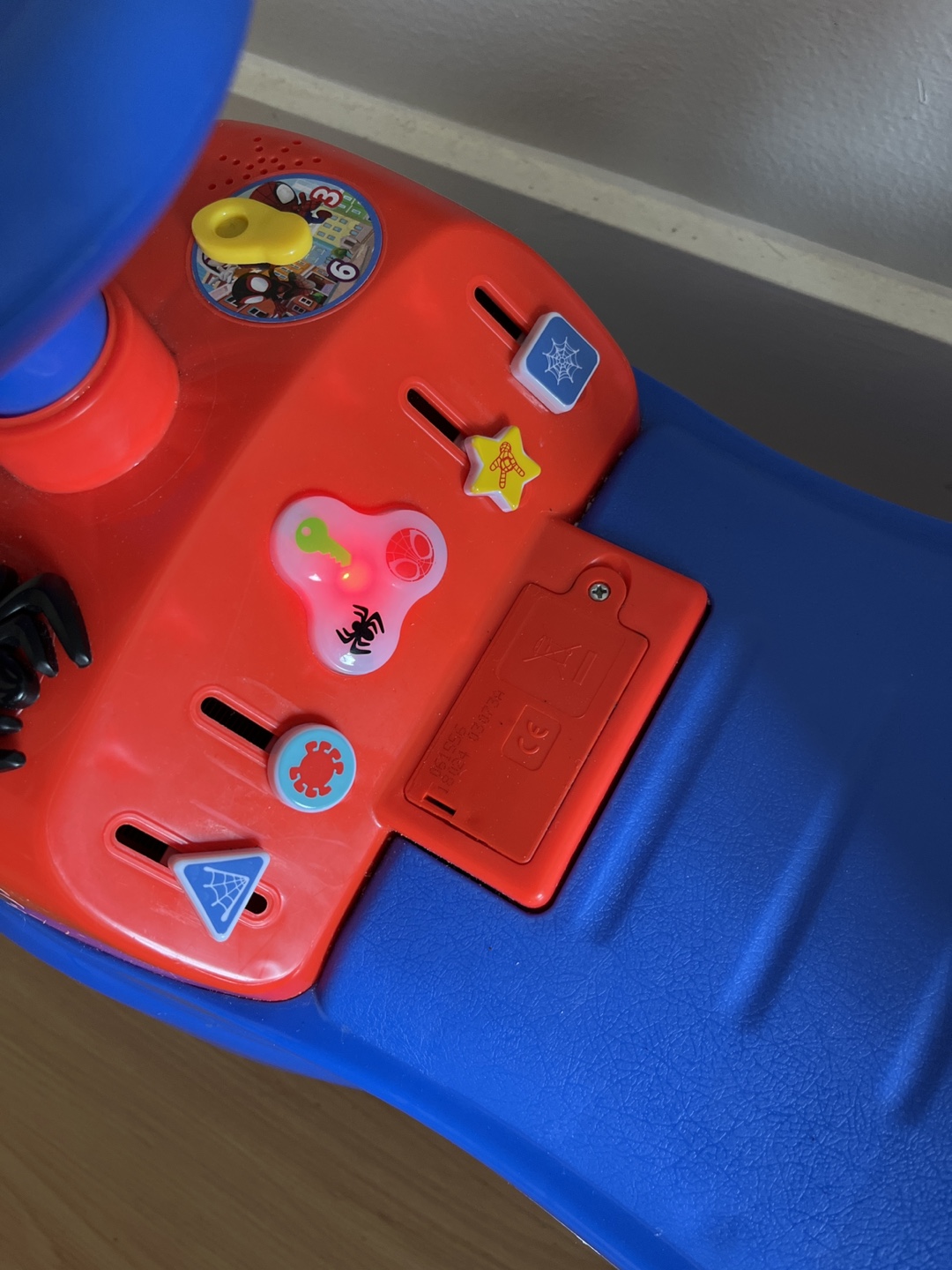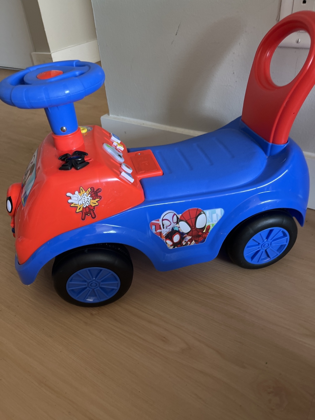 Fun Spider-Man themed ride-on toy. Features interactive buttons and Spider-Man graphics. Suitable for toddlers.
