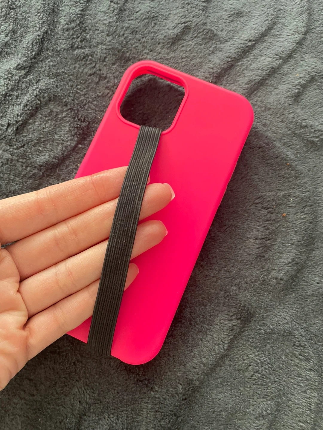 Selling a bright pink phone 12 case! It has a convenient elastic strap on the back for easy holding. It’s in great shape and ready for a new phone to protect