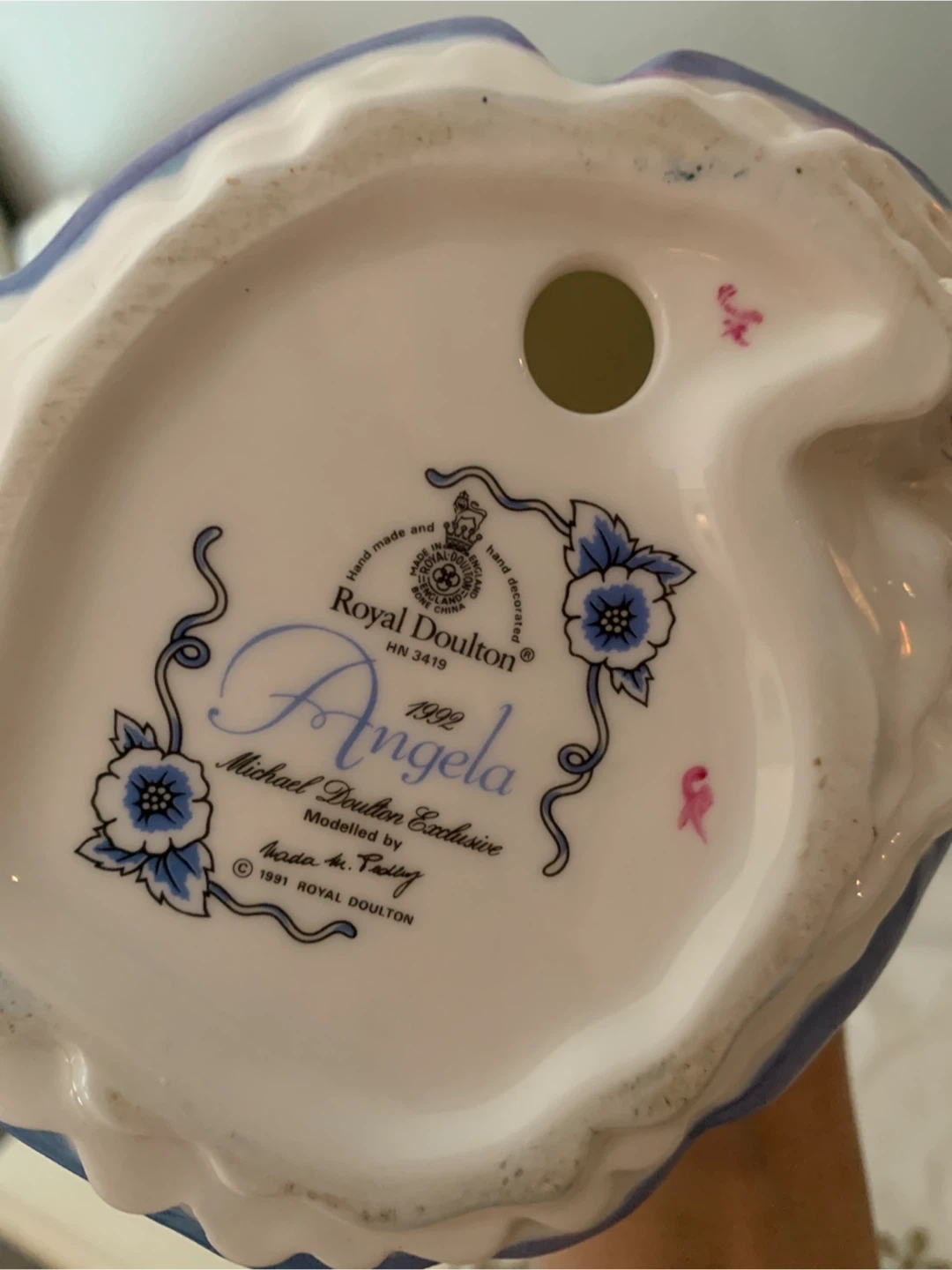 This is the Royal Doulton "Angela" figurine, model HN 3419. It was modelled by Michael Doulton Exclusive and sculpted by Pauline". It's from 1992. Beautifully detailed porcelain decoration.