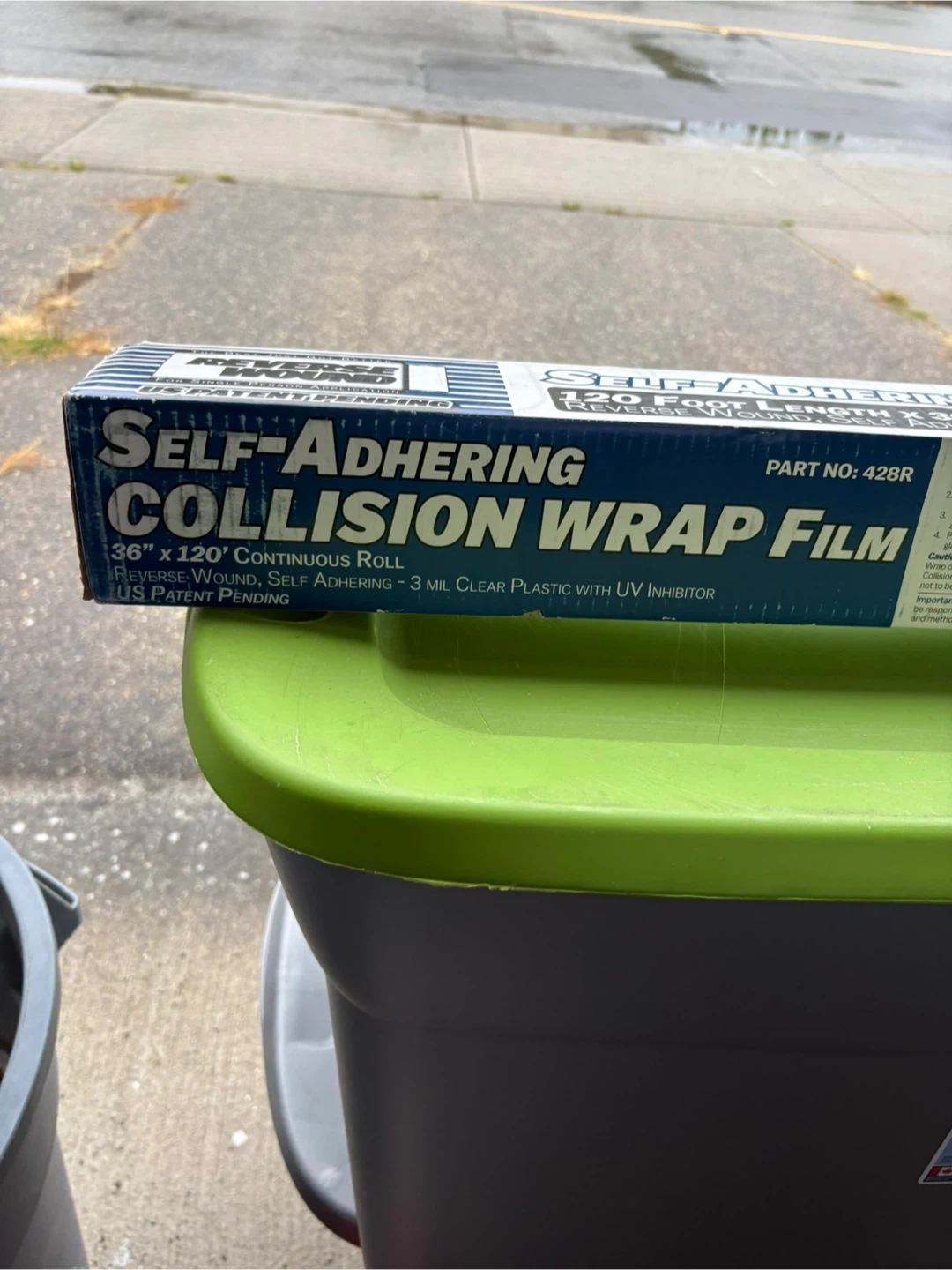 Selling a brand new roll of Reverse Wound Self-Adhering Collision Wrap Film. It's 36" x 120' continuous roll, and it's made of 3 mil clear plastic with a UV inhibitor. The box is included.