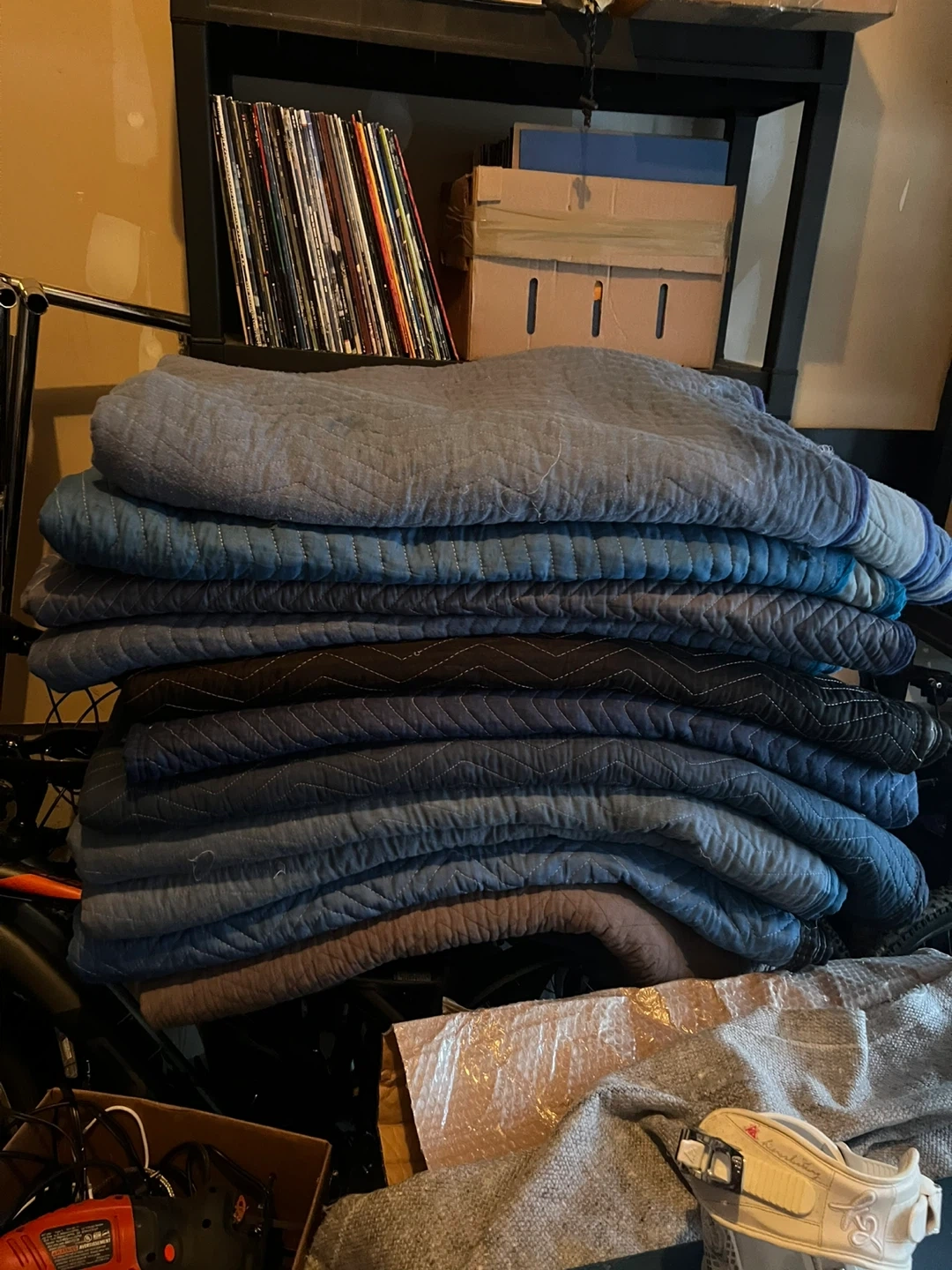 Selling a stack of moving blankets. They're in good condition and ready to help with your next move! These are great for protecting furniture and other items during transport or storage. 10 premium moving blankets