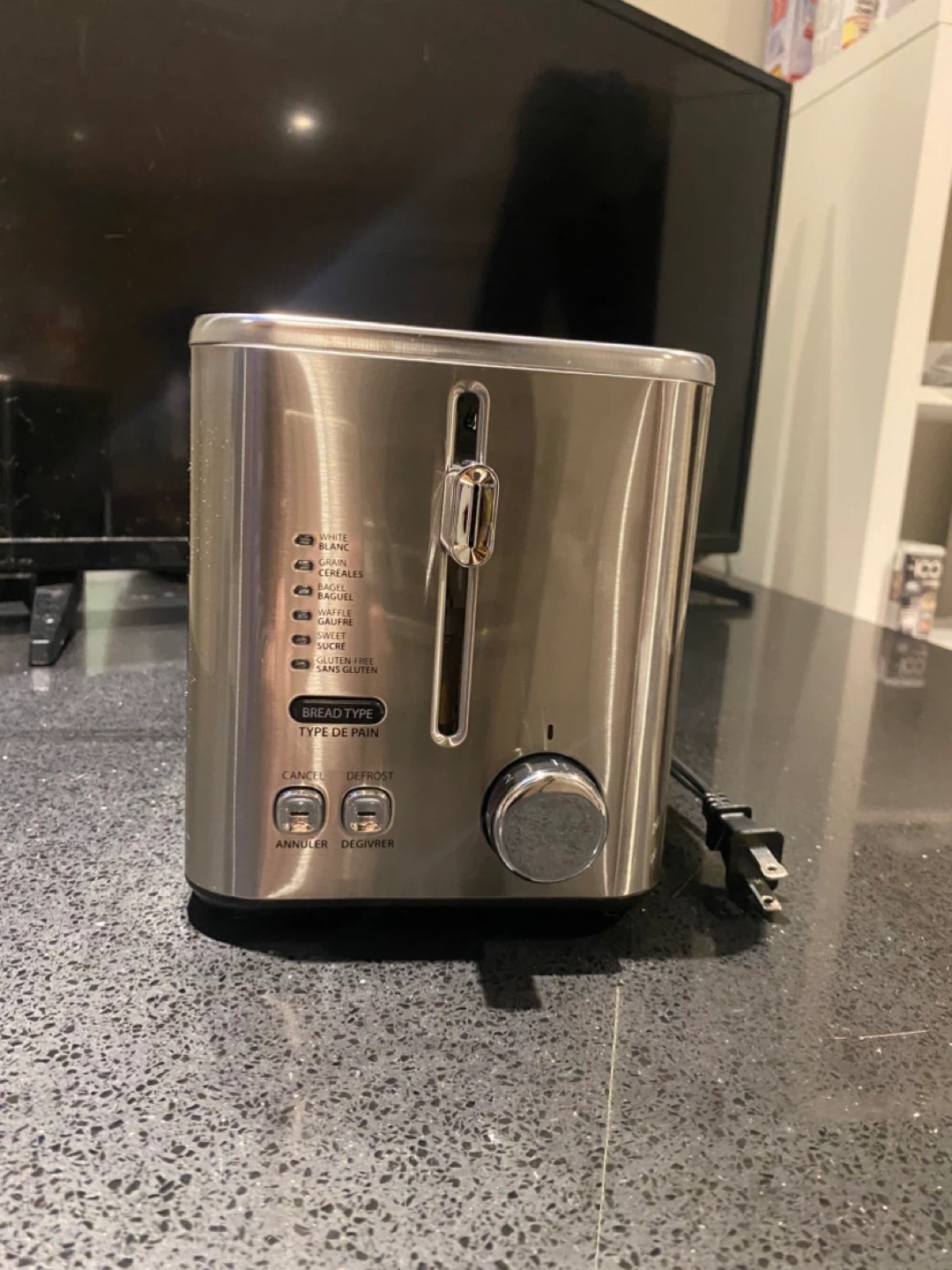 Brand new Toastmaster 2-slice toaster still in the original box. Features extra-wide slots, adjustable shade control, and multiple bread type settings for perfect toast every time. Also includes defrost and cancel buttons for convenience.