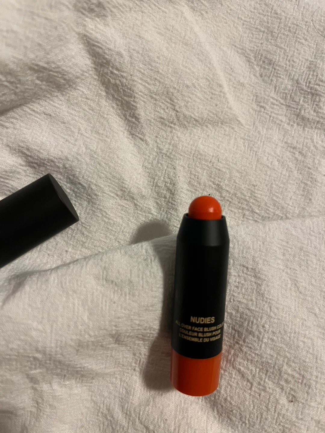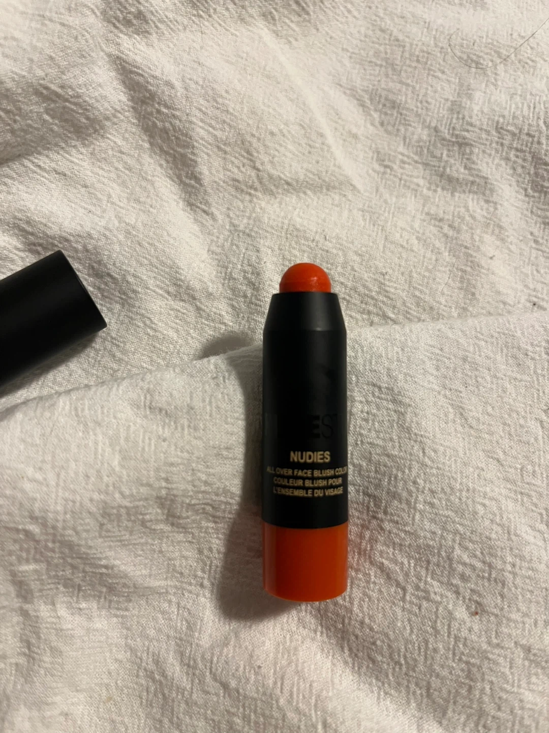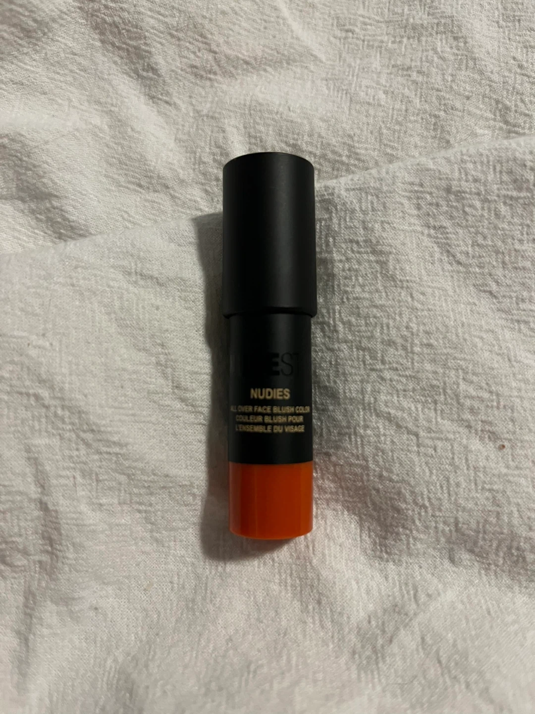 This is the Nudies All Over Face Blush Color in the shade Picante. It's a cream formula designed for easy blending and multi-tasking. This stick application is convenient for on-the-go touch-ups.