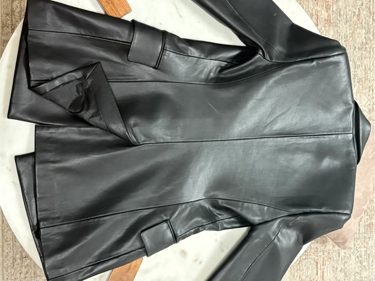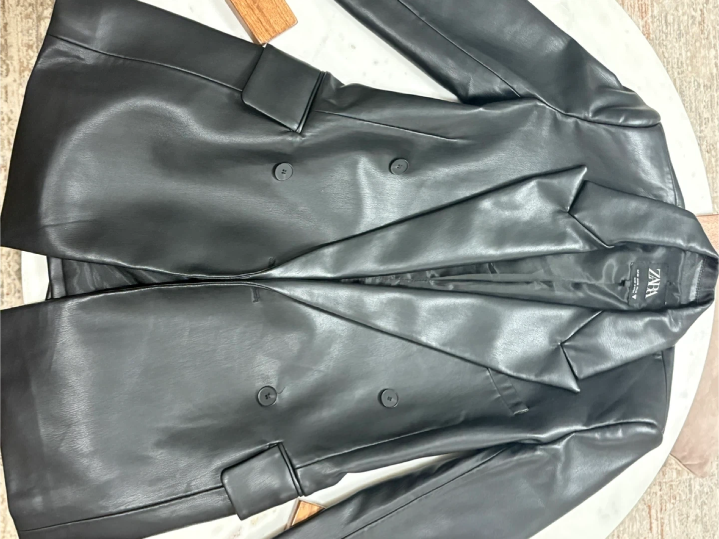 Selling a Zara faux leather blazer in black, size XS. It's in great condition and ready for a new wardrobe!