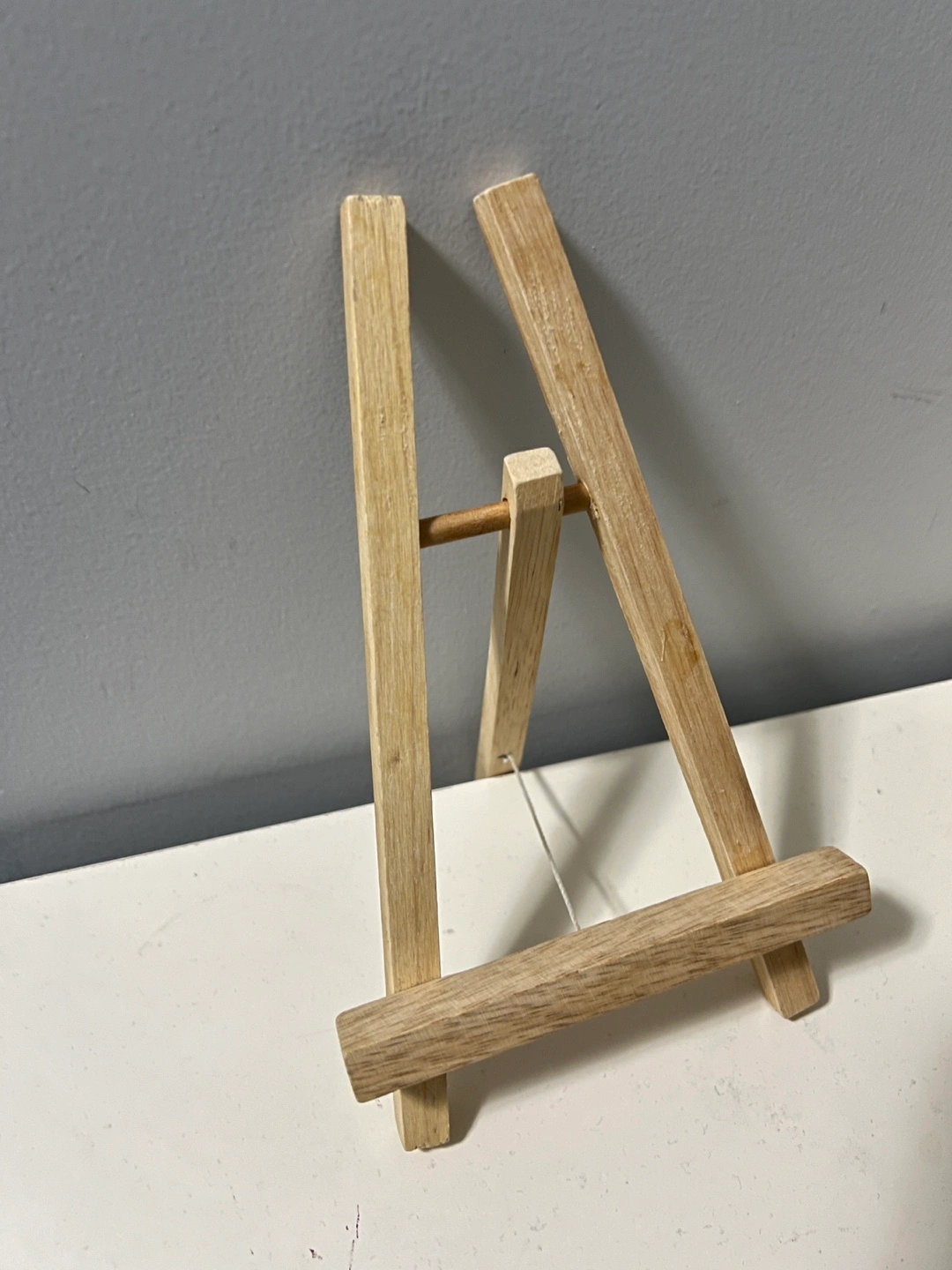 Small wooden easel. Perfect for displaying small artwork or photos. Simple design, light weight.