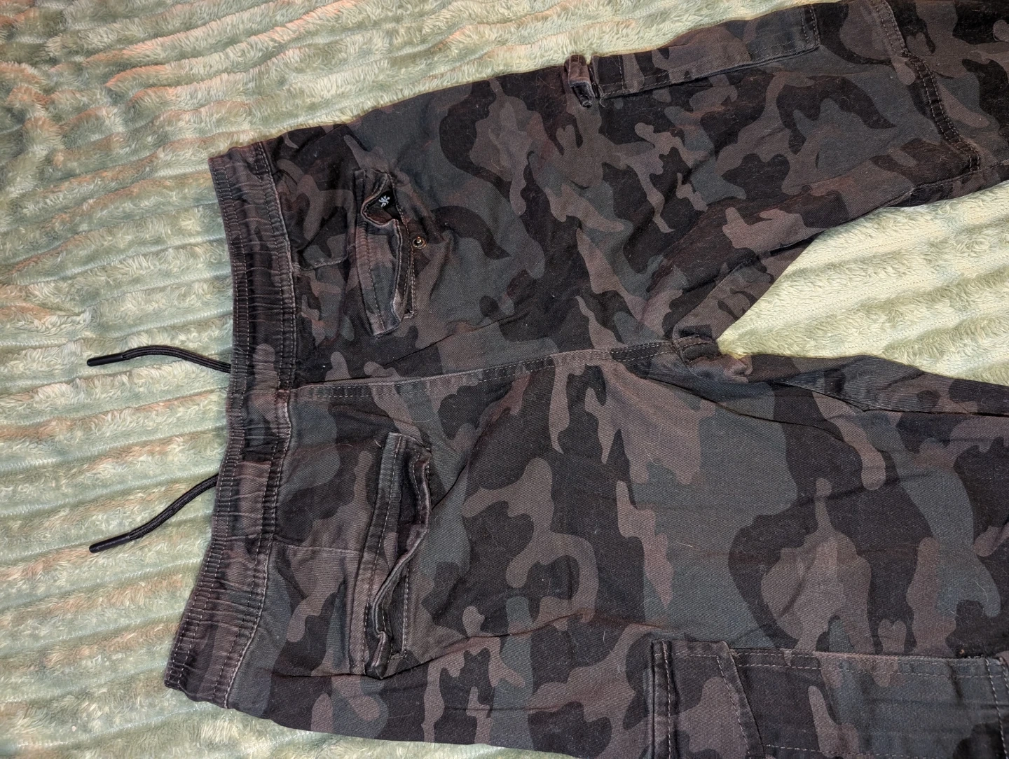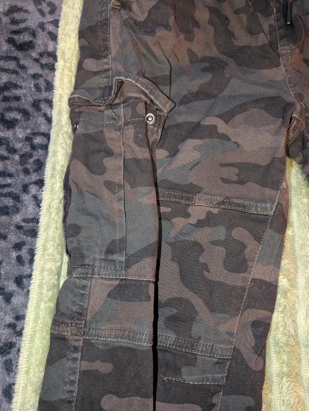 Selling a pair of Zoo York cargo pants in a cool camouflage pattern! They have a comfortable elastic waistband with a drawstring. Great for a casual, streetwear look. Size 15/16 in youth sizes.