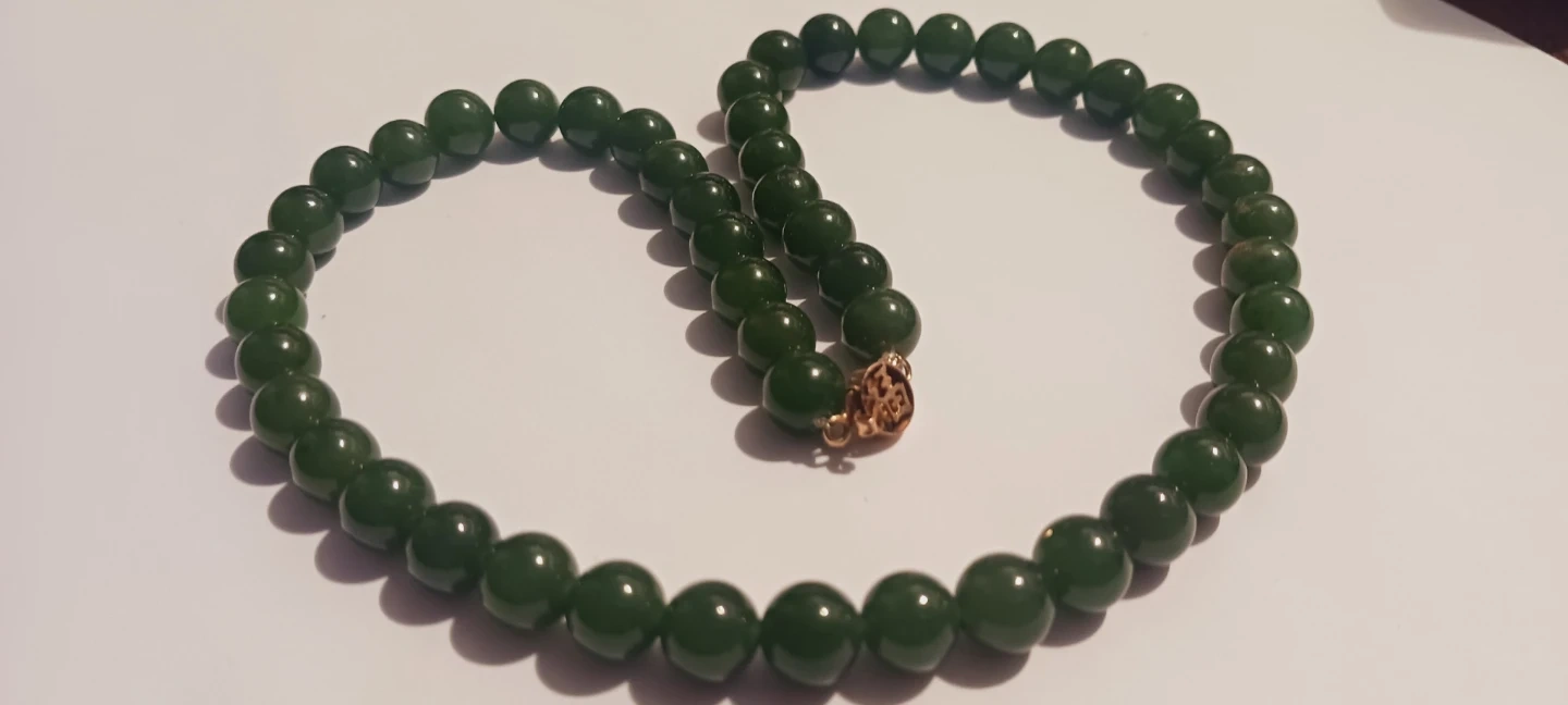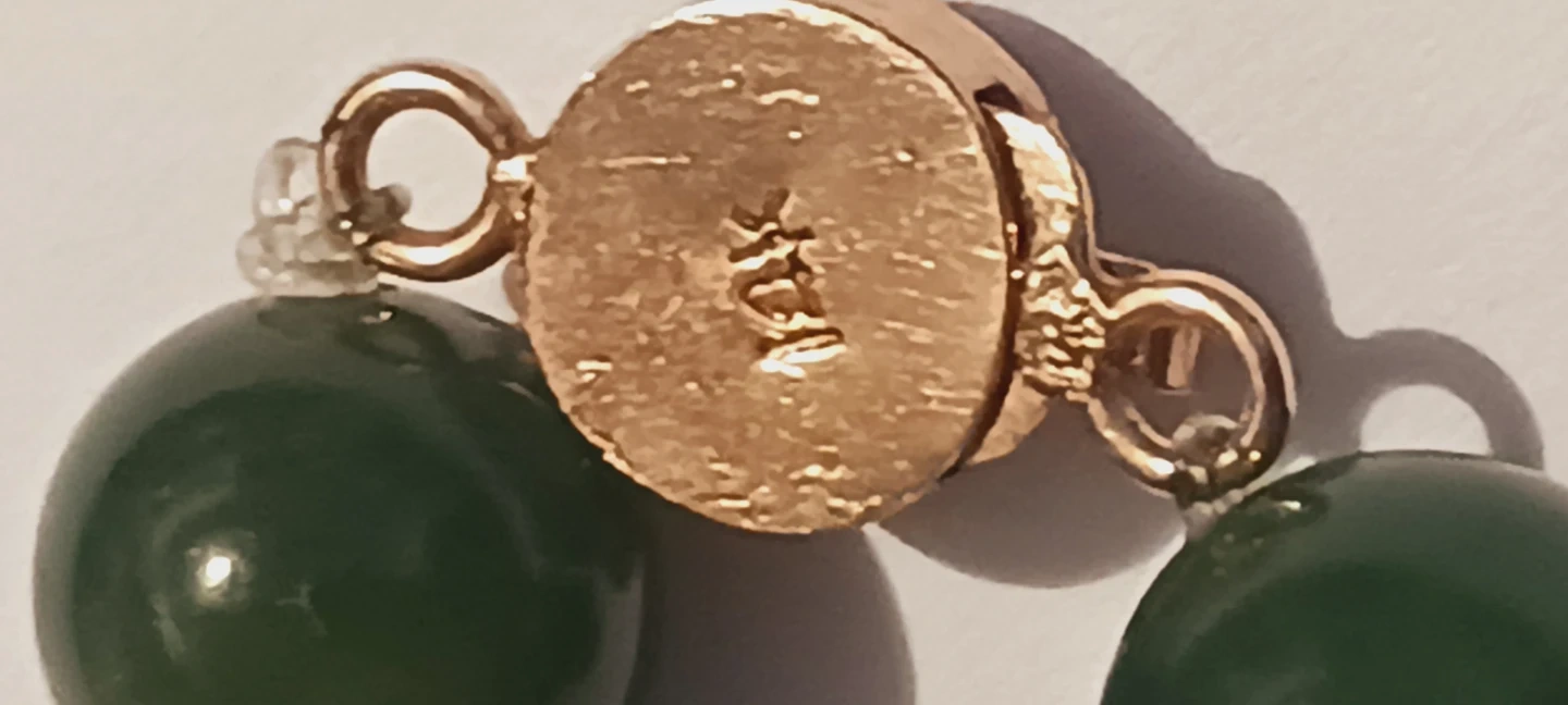 14 KARAT GOLD CLASP STAMPED CHINESE JADE NECKLACE