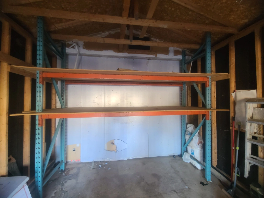Heavy duty storage shelving unit. Two shelves. Would be great for a garage, basement, or workshop. Comes in two pieces. already disassemble and remove.