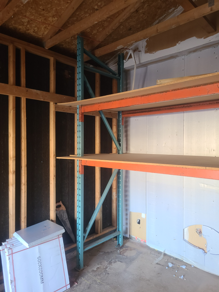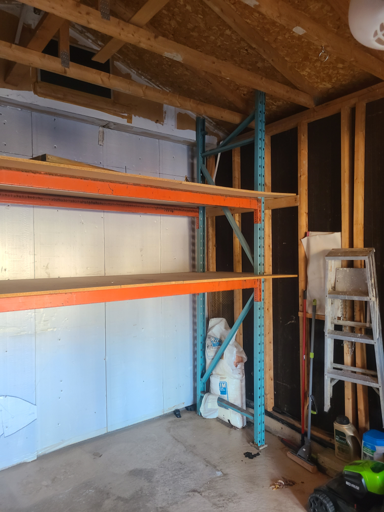 Heavy duty storage shelving unit. Two shelves. Would be great for a garage, basement, or workshop. Comes in two pieces. already disassemble and remove.