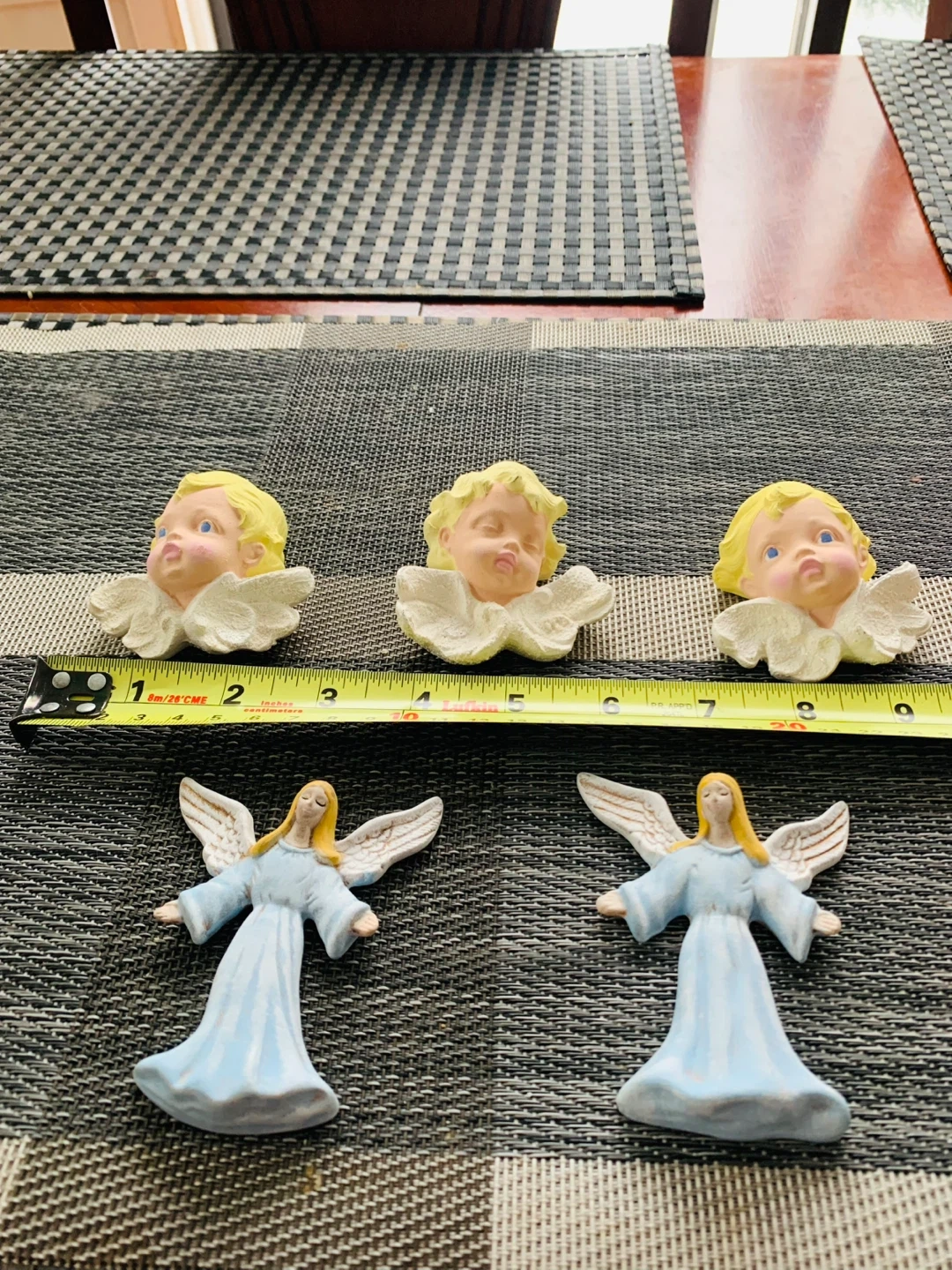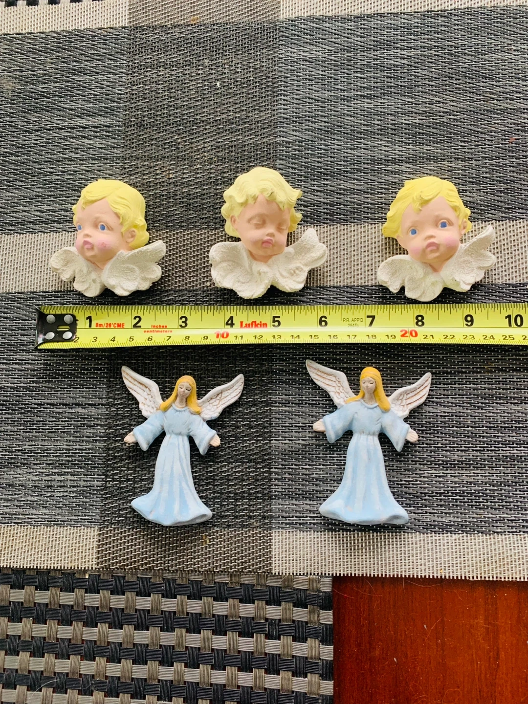 Plaster… NEW hand-painted Angels Decoration. Take all 5 for $6 CAD (firm). See pictures for measurements. Smoke free home.