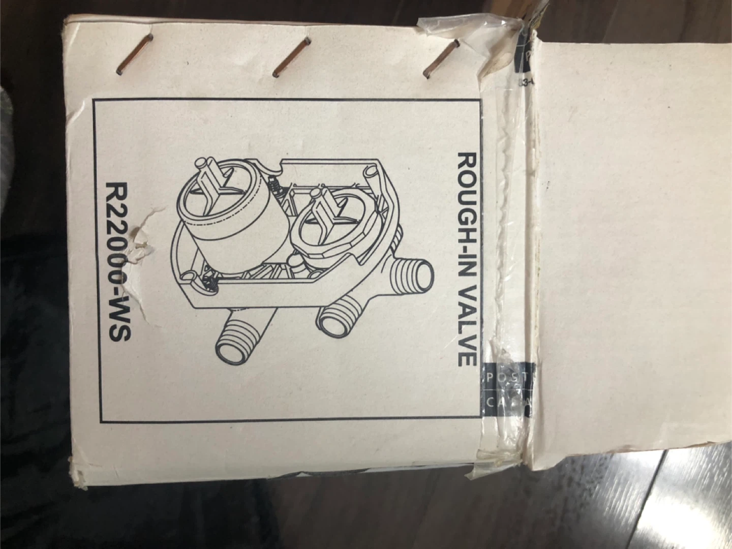 This is a rough-in valve, model R22000-WS. It's made of solid brass. This valve is typically used during the initial plumbing installation for showers or bathtubs. Not used. Regular cost is $250. Offered at $100.