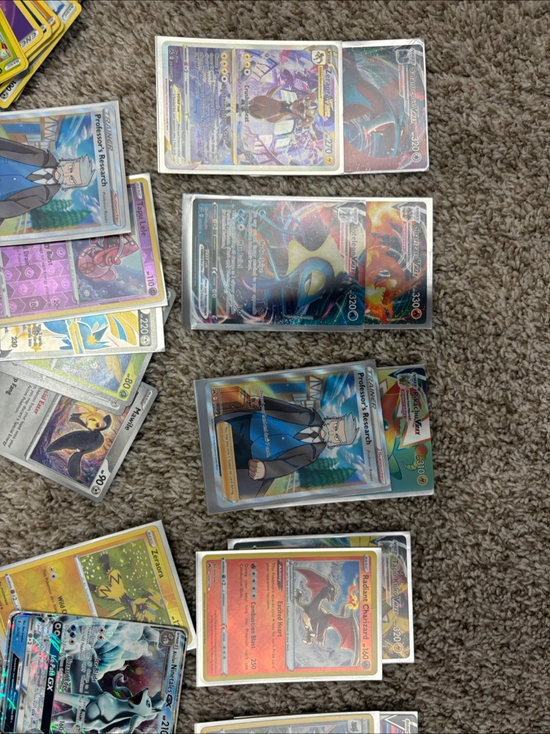 A collection of Pokemon cards, with many holographic and rare cards. Would make a wonderful gift. I hope you enjoy these cards as much as I have.