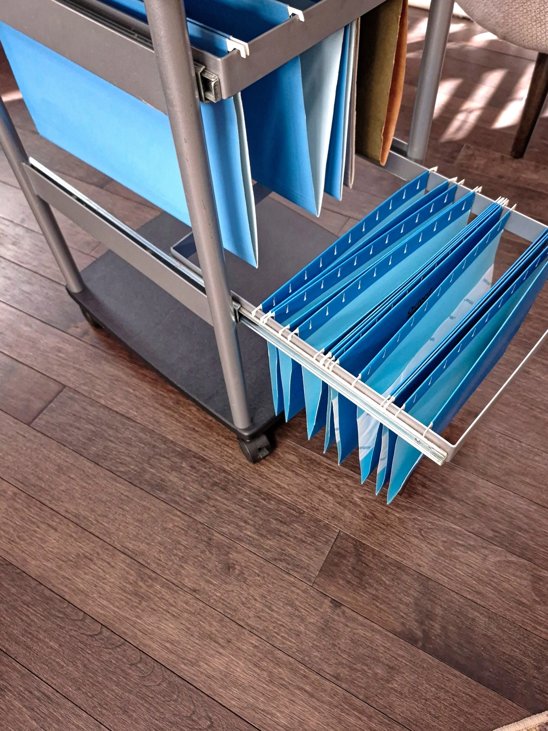 - 2 tier heavy duty steel construction hanging file system that accommodates either Letter or Legal size folders.