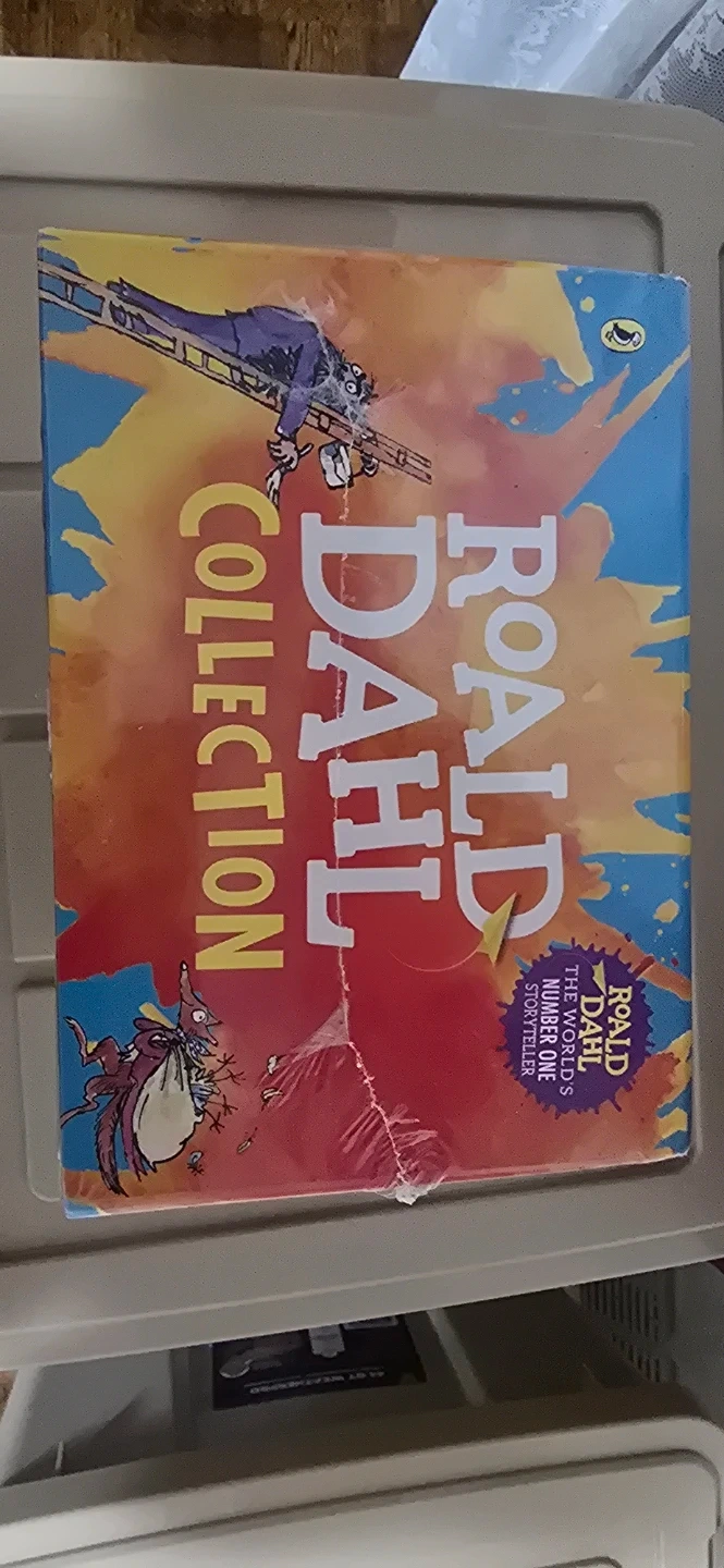 This collection features 16 fantastic stories by Roald Dahl, illustrated by Quentin Blake. Titles include Charlie and the Chocolate Factory, Matilda, The Twits, and many more. It's a wonderful set for young readers. It's in the original packing with a bit of tearing.