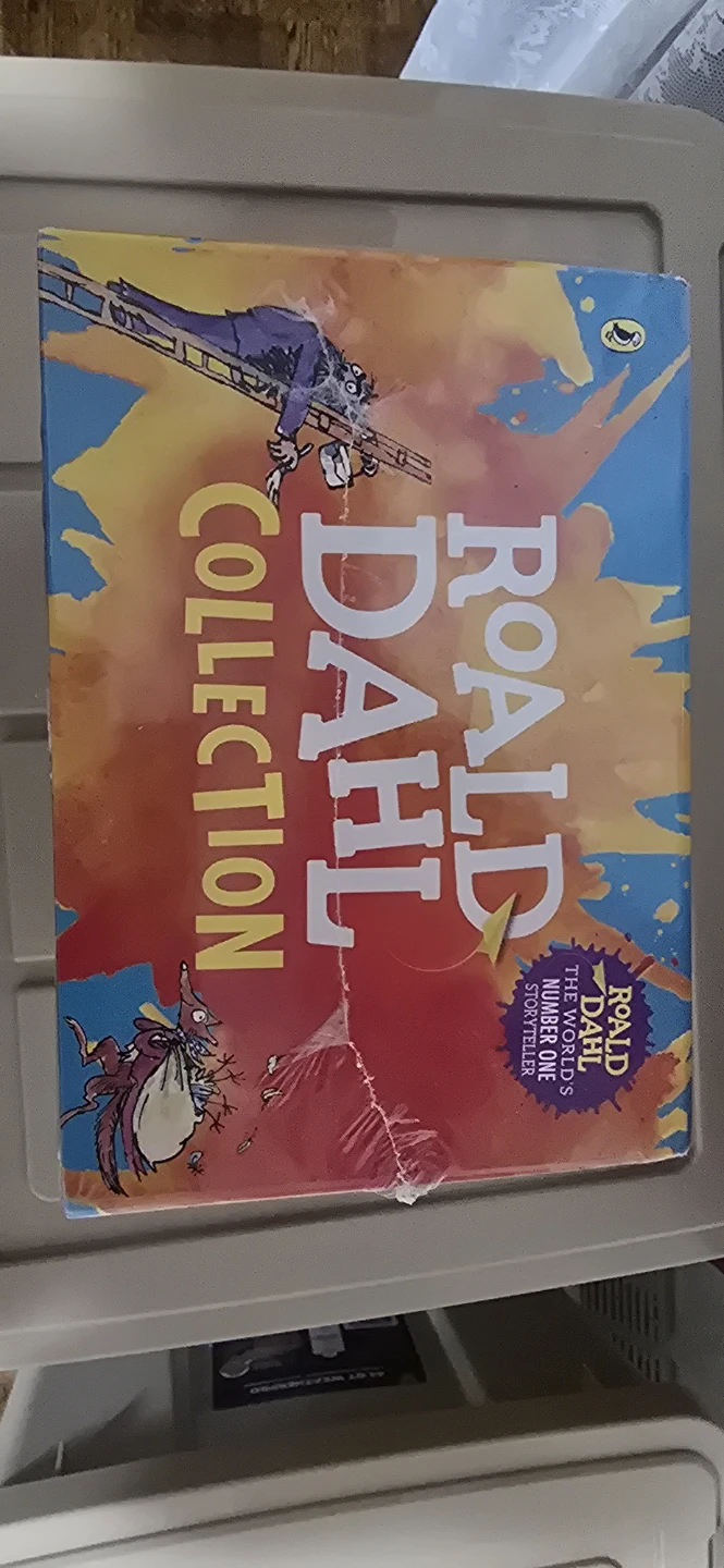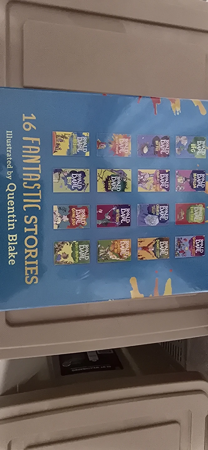 This collection features 16 fantastic stories by Roald Dahl, illustrated by Quentin Blake. Titles include Charlie and the Chocolate Factory, Matilda, The Twits, and many more. It's a wonderful set for young readers. It's in the original packing with a bit of tearing.